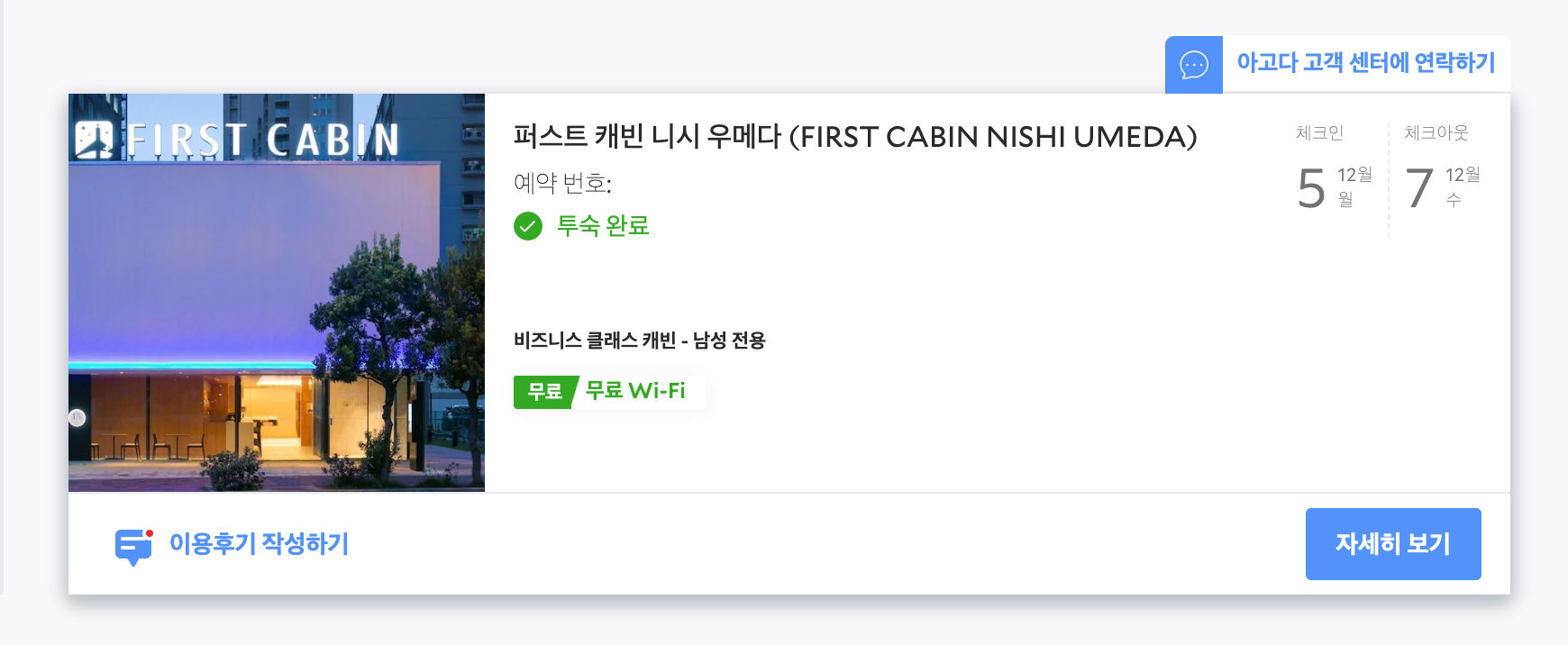 "퍼스트캐빈 니시우메다" 캡슐호텔 입니다.
