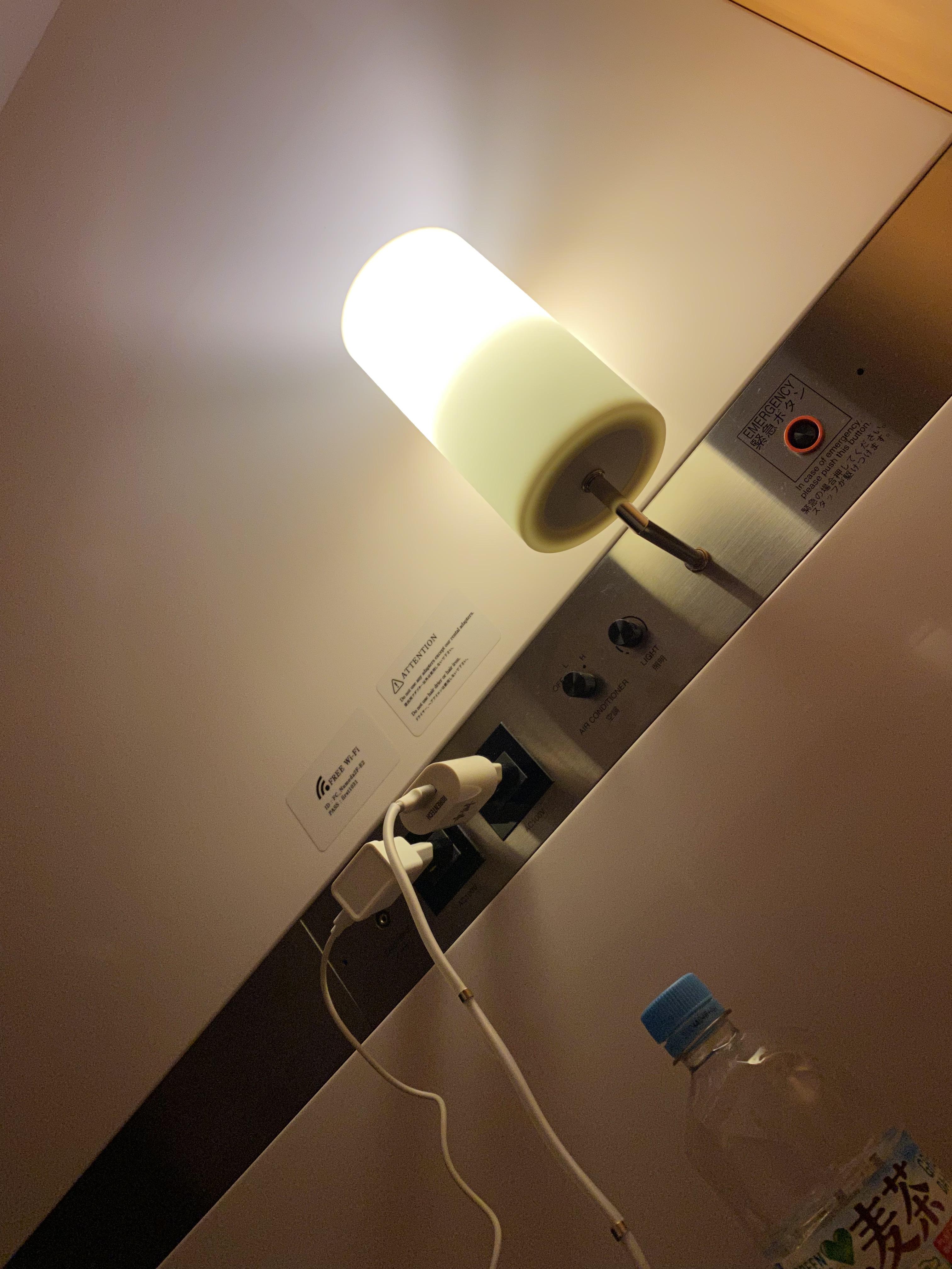 전등은 머리맡에 있으며 텔레비전을 볼 수 있게 이어폰 플러그까지 있습니다.