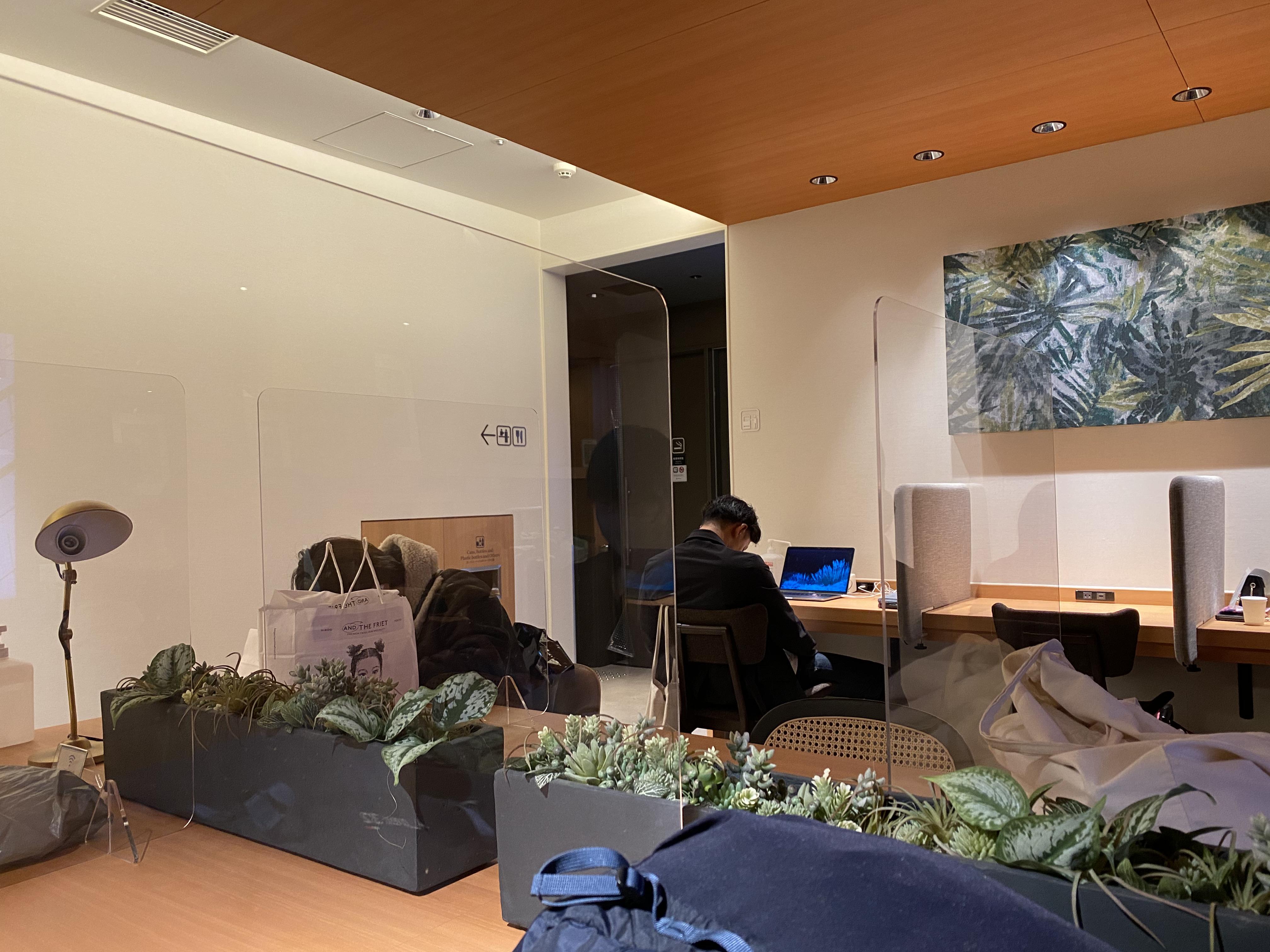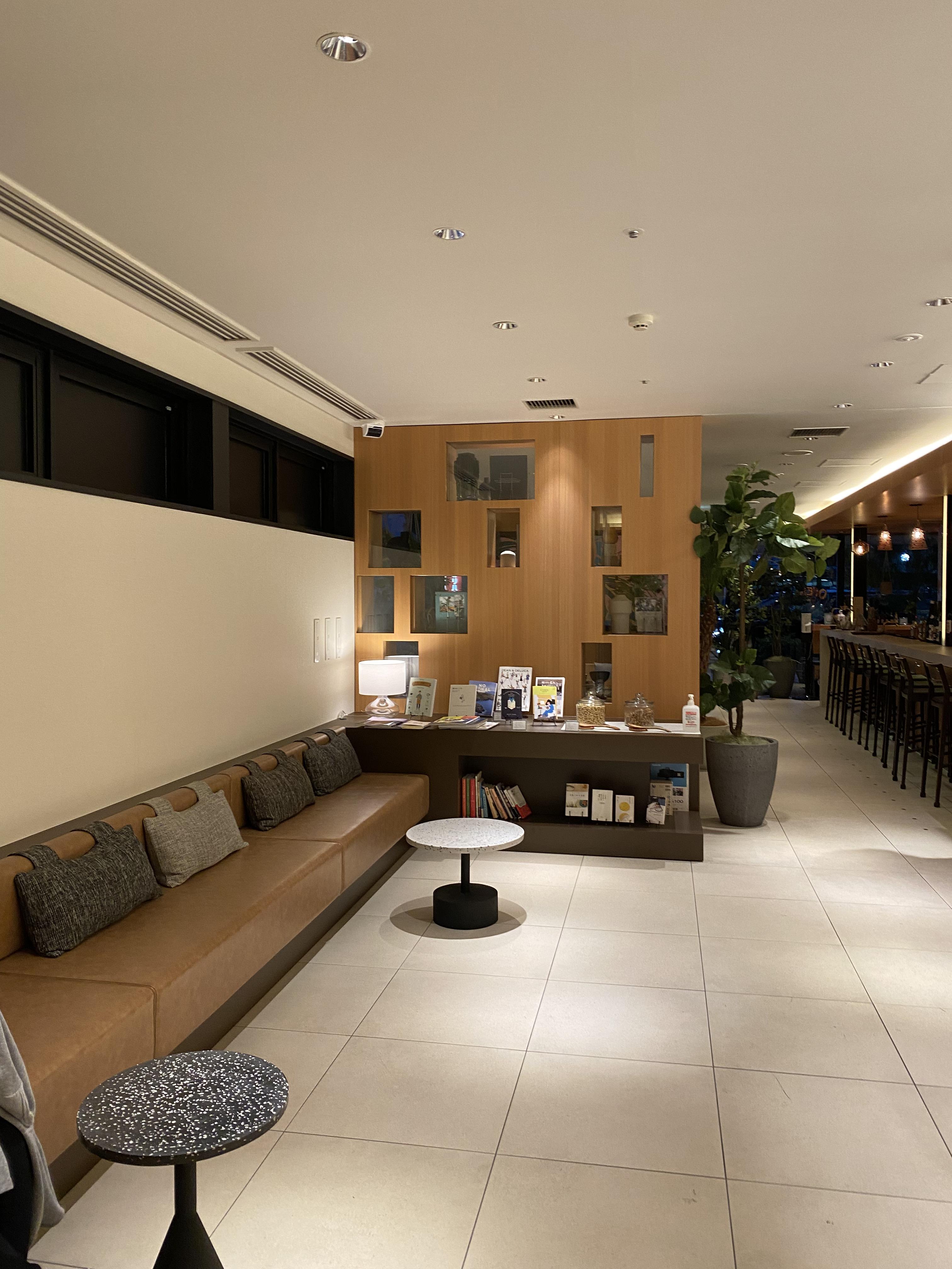디자인은 아주 예뻤고, 로비에는 대화와 작업을 할 수 있는 테이블과 충전할 수 있는 플러그가 잔뜩 있습니다.
