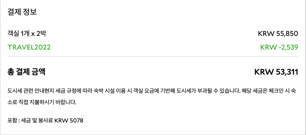 쿠폰 할인이 없더라도 1박에 약 28000원에 이용 할 수 있었던