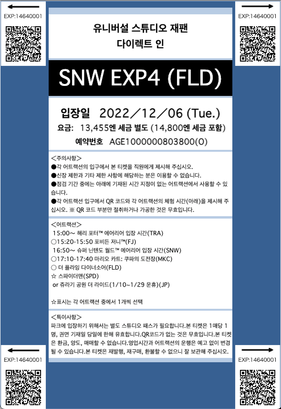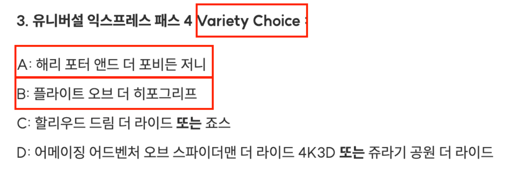 이용이 가능한 티켓이기에 어떤 어트랙션이 포함되어 있는지 꼼꼼히 확인해야 할 필요가 있습니다.