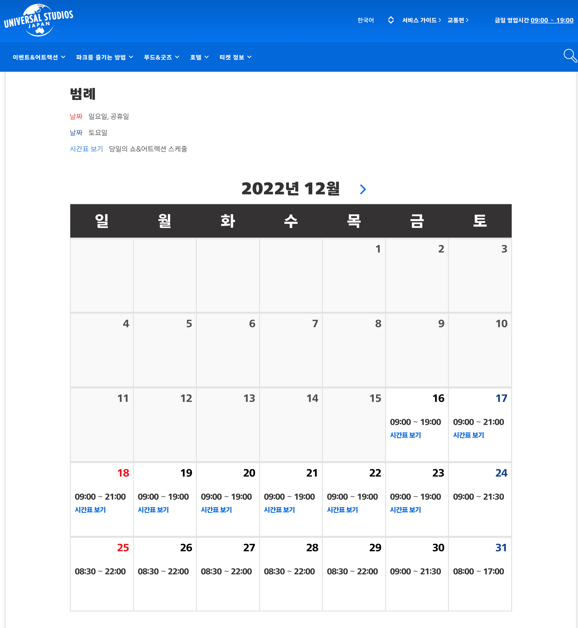 매 월 매 주 해당 유니버셜 스튜디오에서 성수기 비성수기를 나누어 가격대를 잡아 놨기 때문인데요