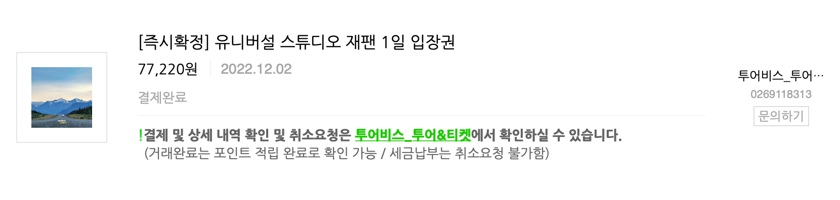 저는 투어비스에서 할인권을 받아 77220원에 결제를 완료했습니다.
