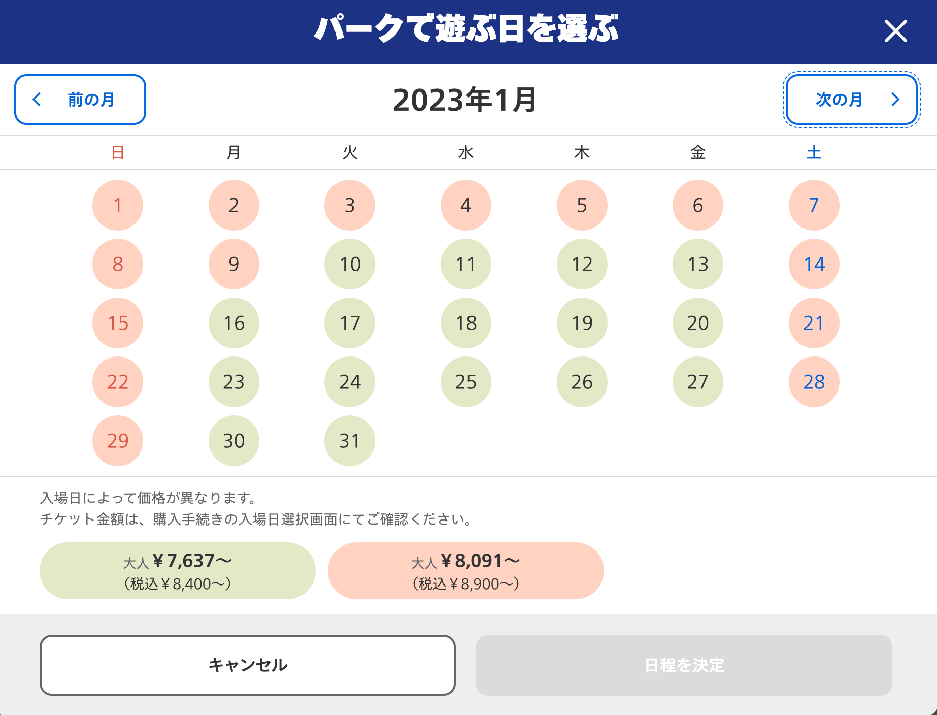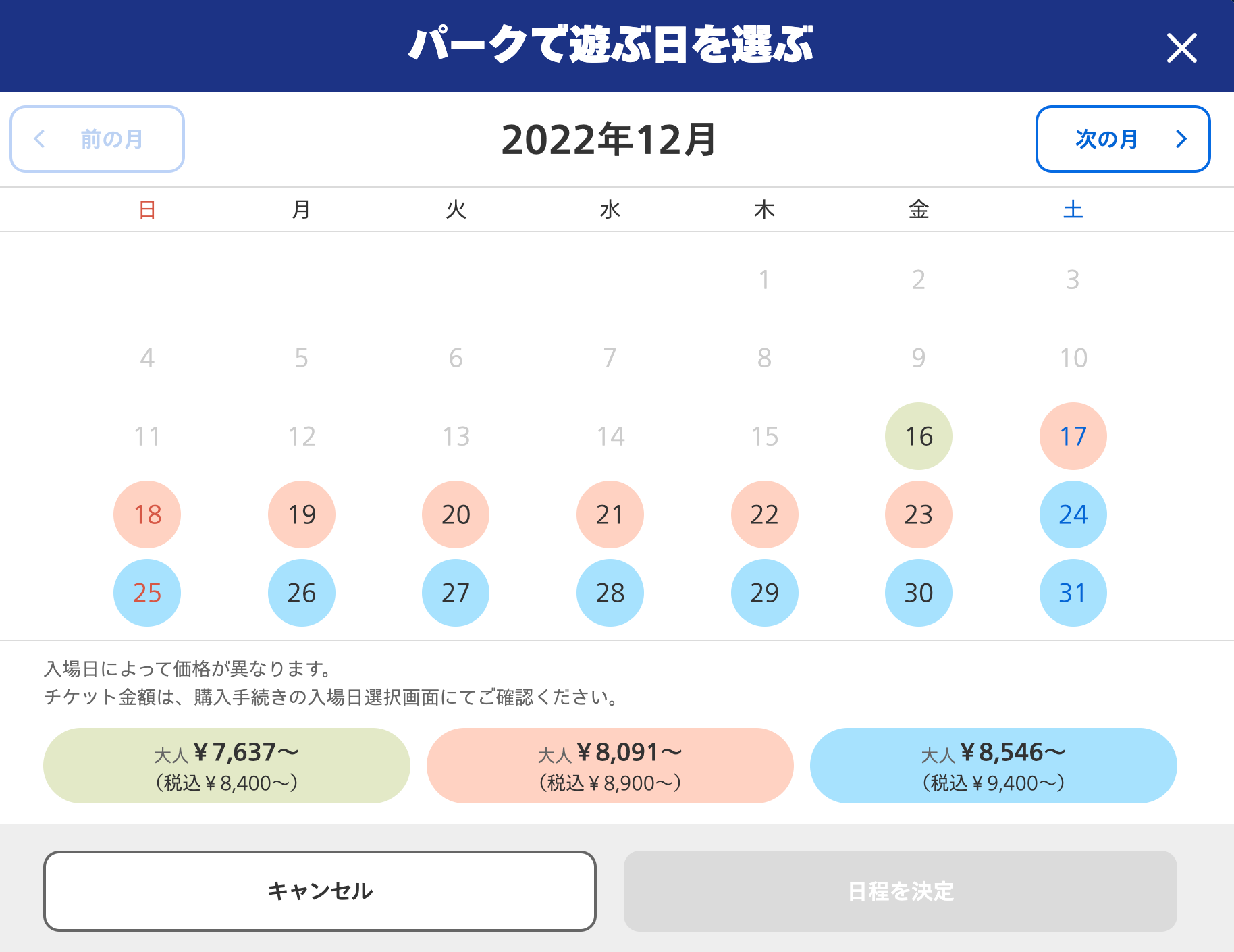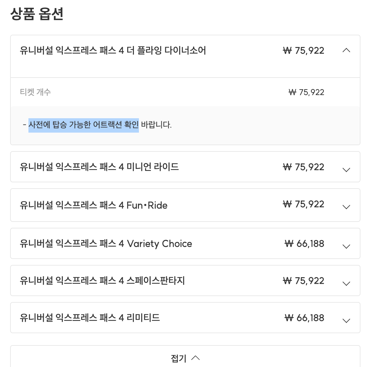 들어가 있는 어트랙션에 따라 가격대가 다른 것을 확인 할 수 있습니다.