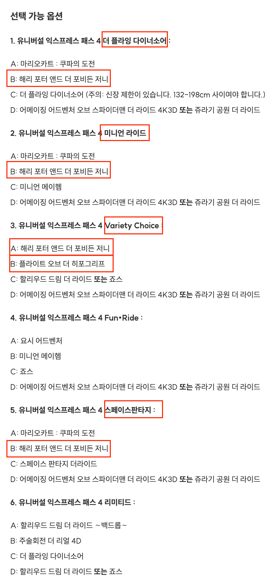 해리포터 어트랙션이 포함되어있는 상품에 체크를 해 두었으니 쉽게 확인 해 보시길 바랍니다!