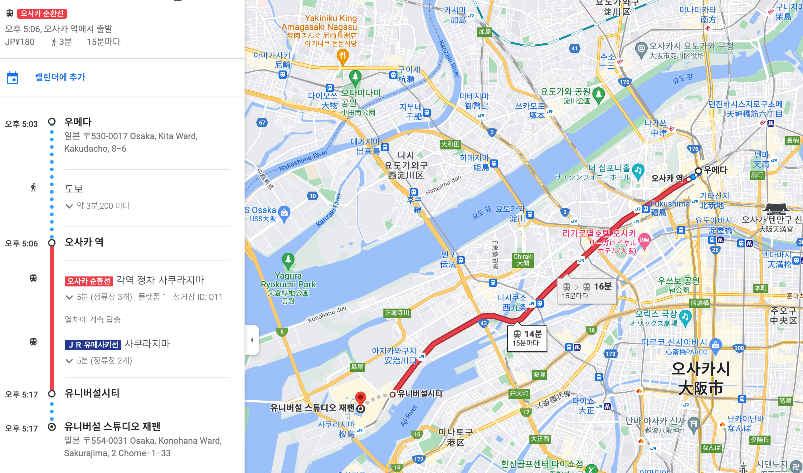 오사카 순환선을 타고 쭉 가는건데
