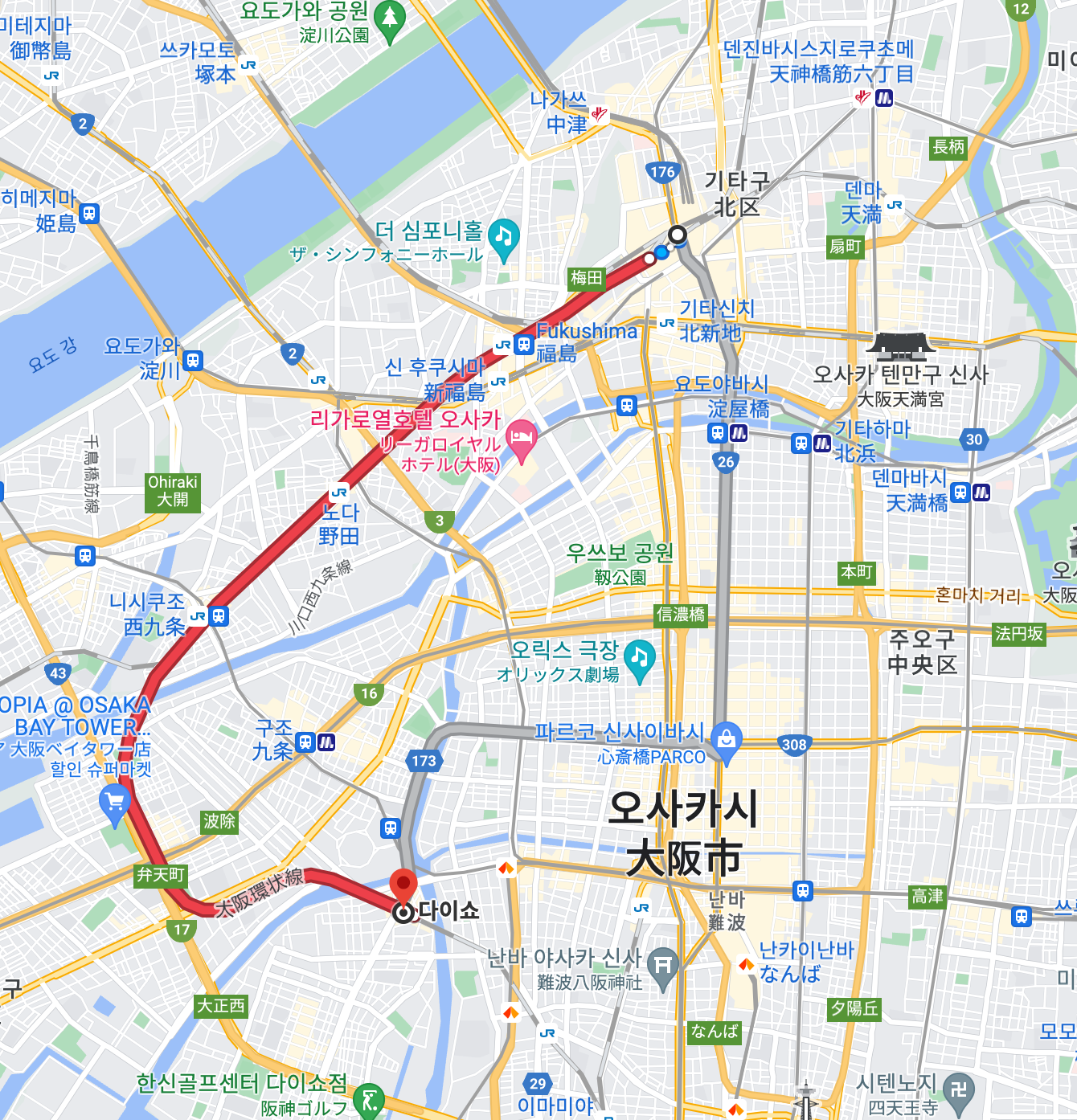 제가 있던 우메다 역을 기준으로 해서