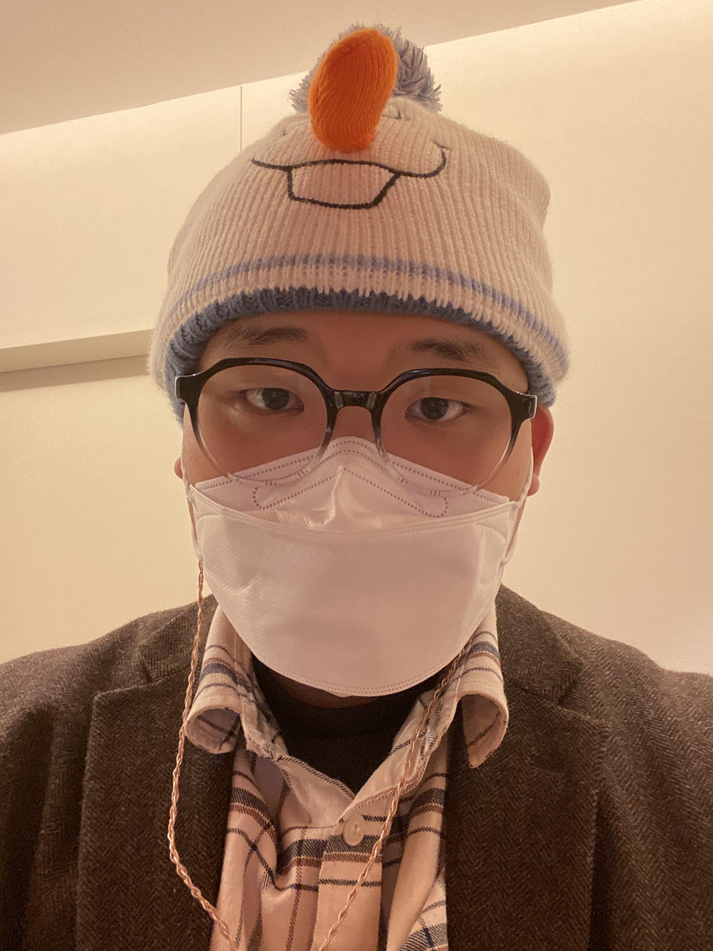 귀염둥이 올라프 모자를 쓰고 갑니다.