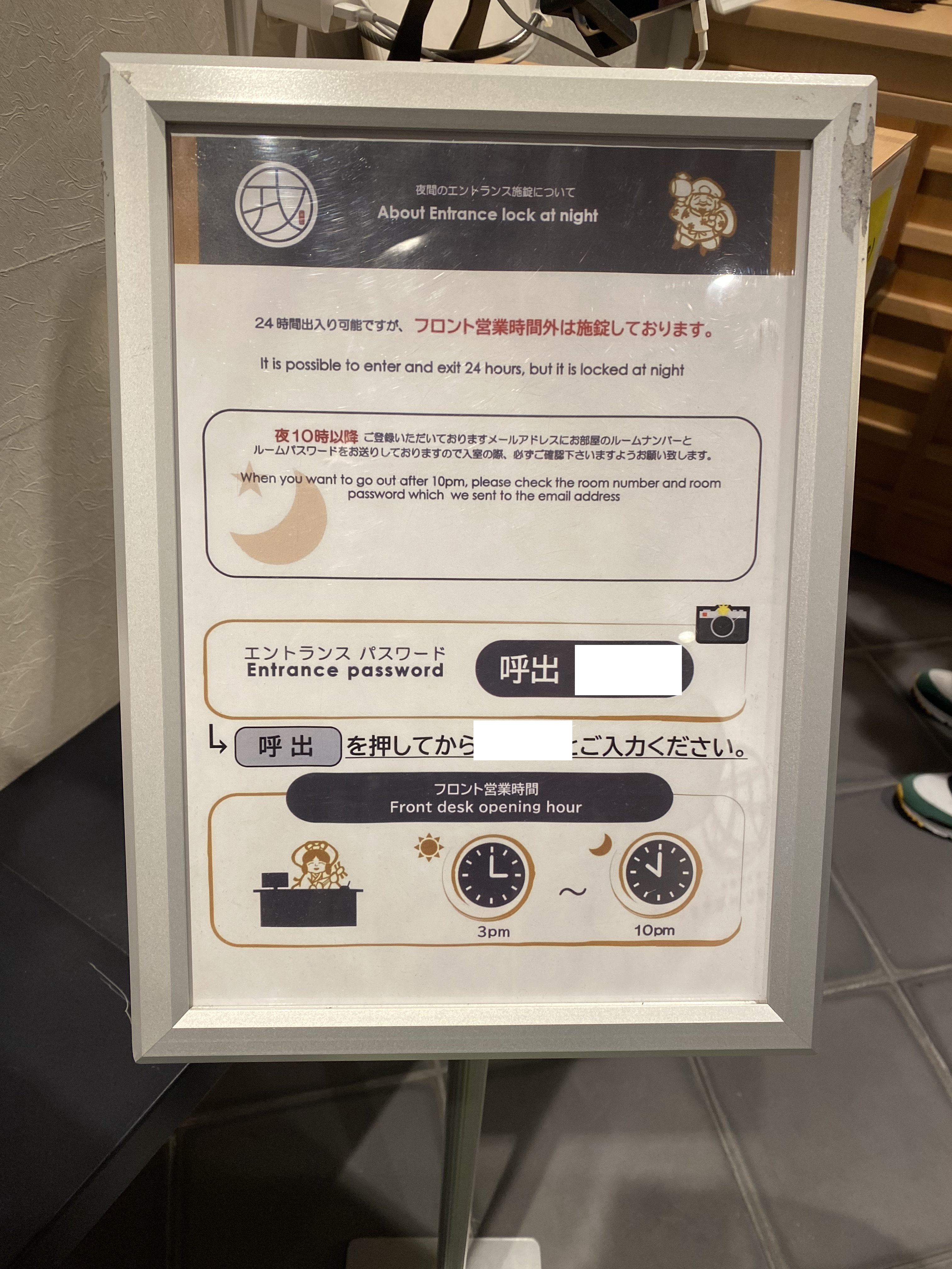 밤 늦게 들어오실 땐 직원이 없으니 비밀번호로 대문을 열고 들어오시라는 안내가 있습니다.