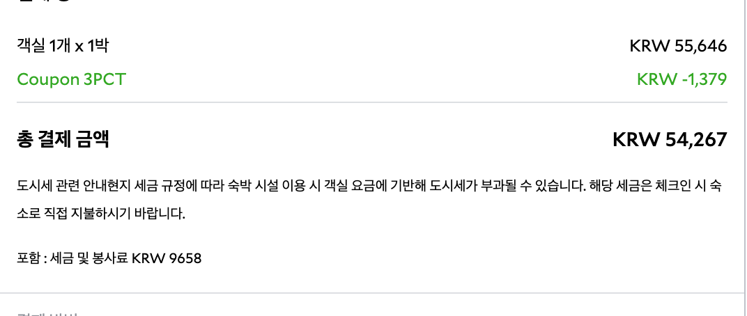 1박 기준 할인가 없이 55646원에 예약 가능했습니다.