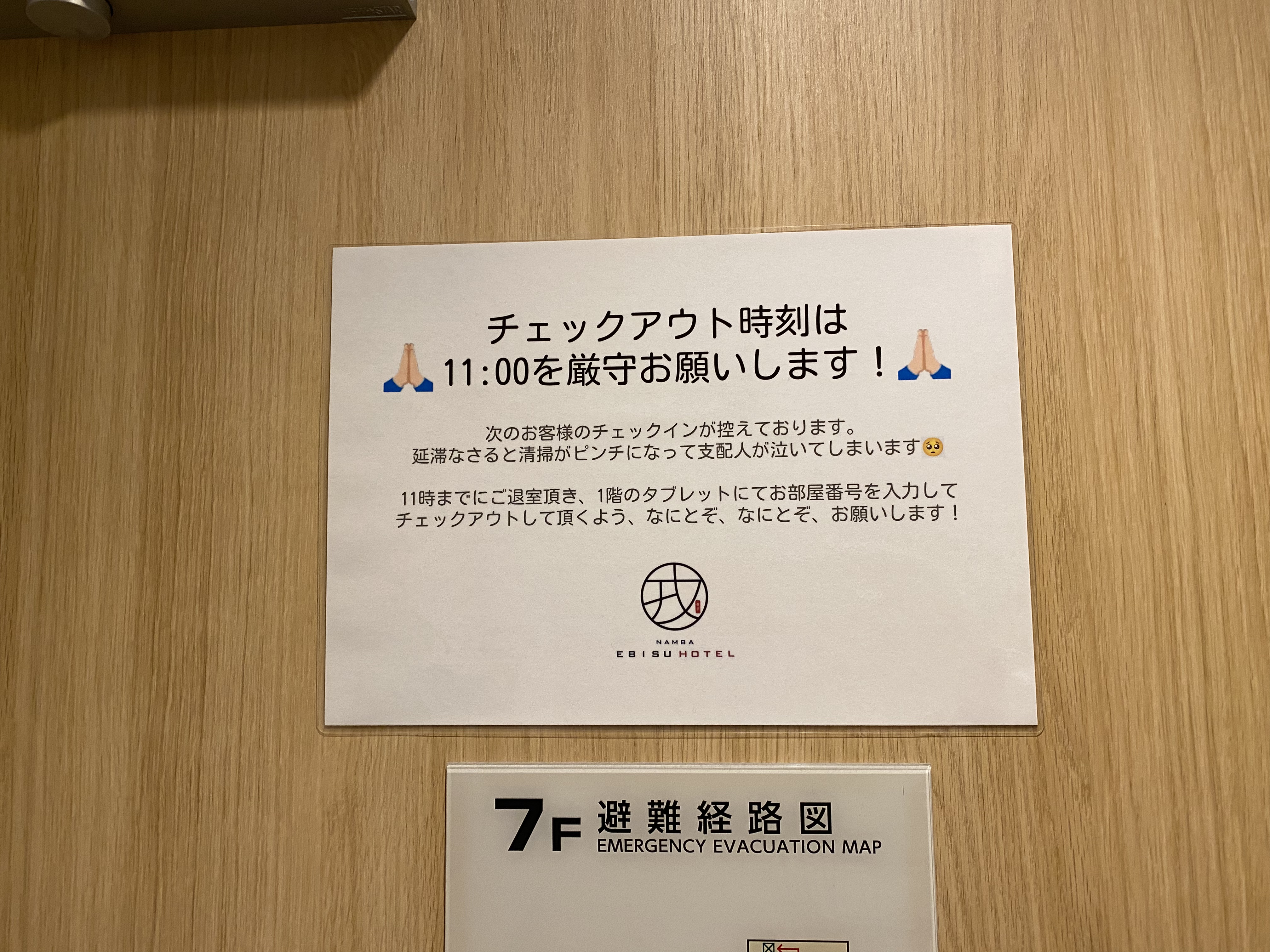 방에 입장하면 붙어있는 체크아웃 안내표입니다.