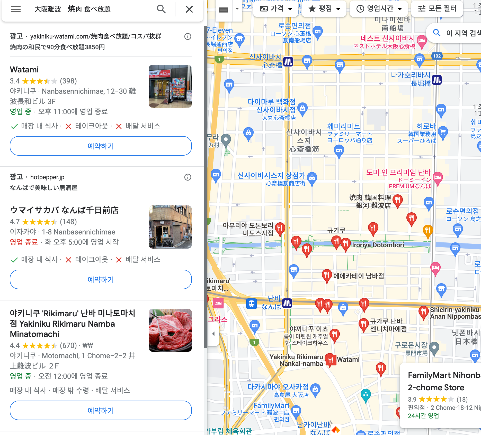 그것과 달리 食べ放題 키워드를 넣어 검색해봤는데
