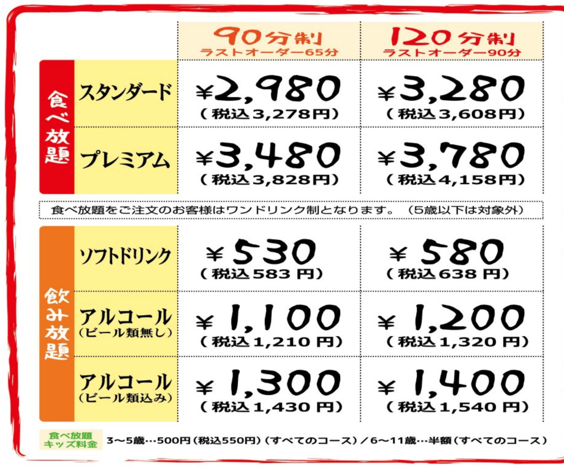 이렇게 食べ放題 라는 글자와 함께 가격표가 형성이 되어 있는 곳이라면