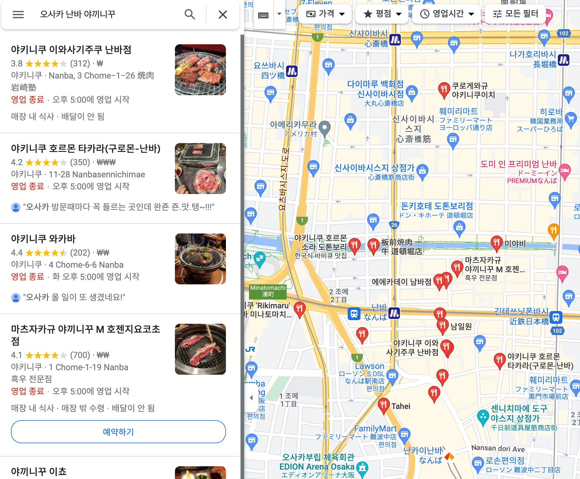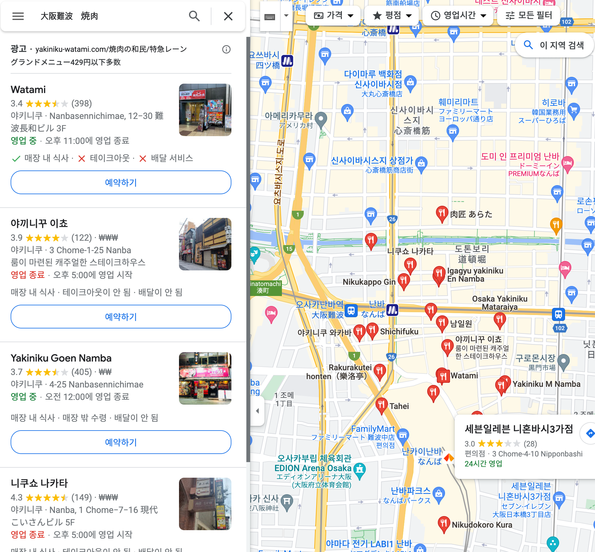 눈에 보이는 음식점을 클릭해 메뉴 사진들이나 정보를 확인해봐야합니다.