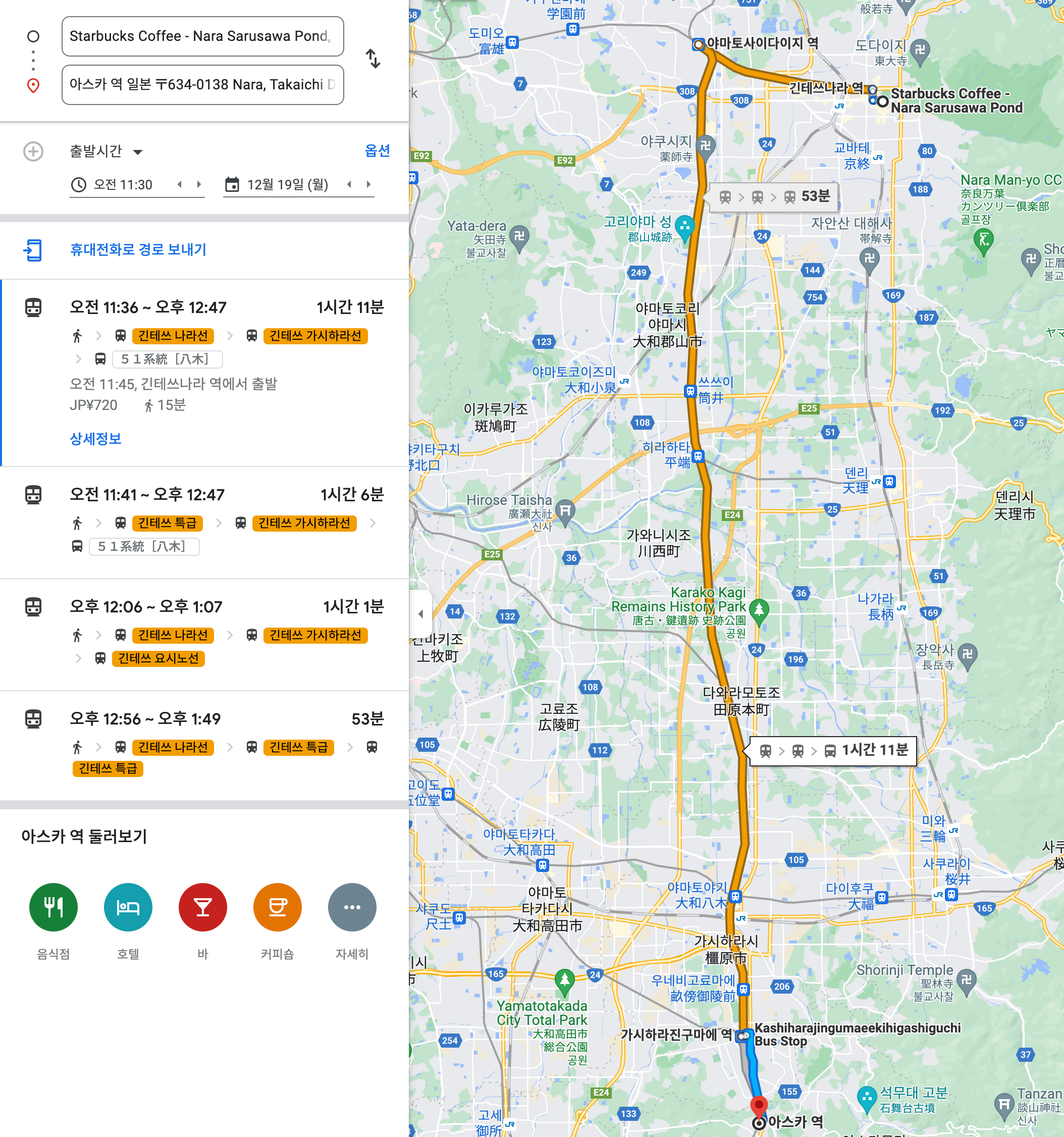 바로 옆에 있는 긴테쓰 나라 선을 타고