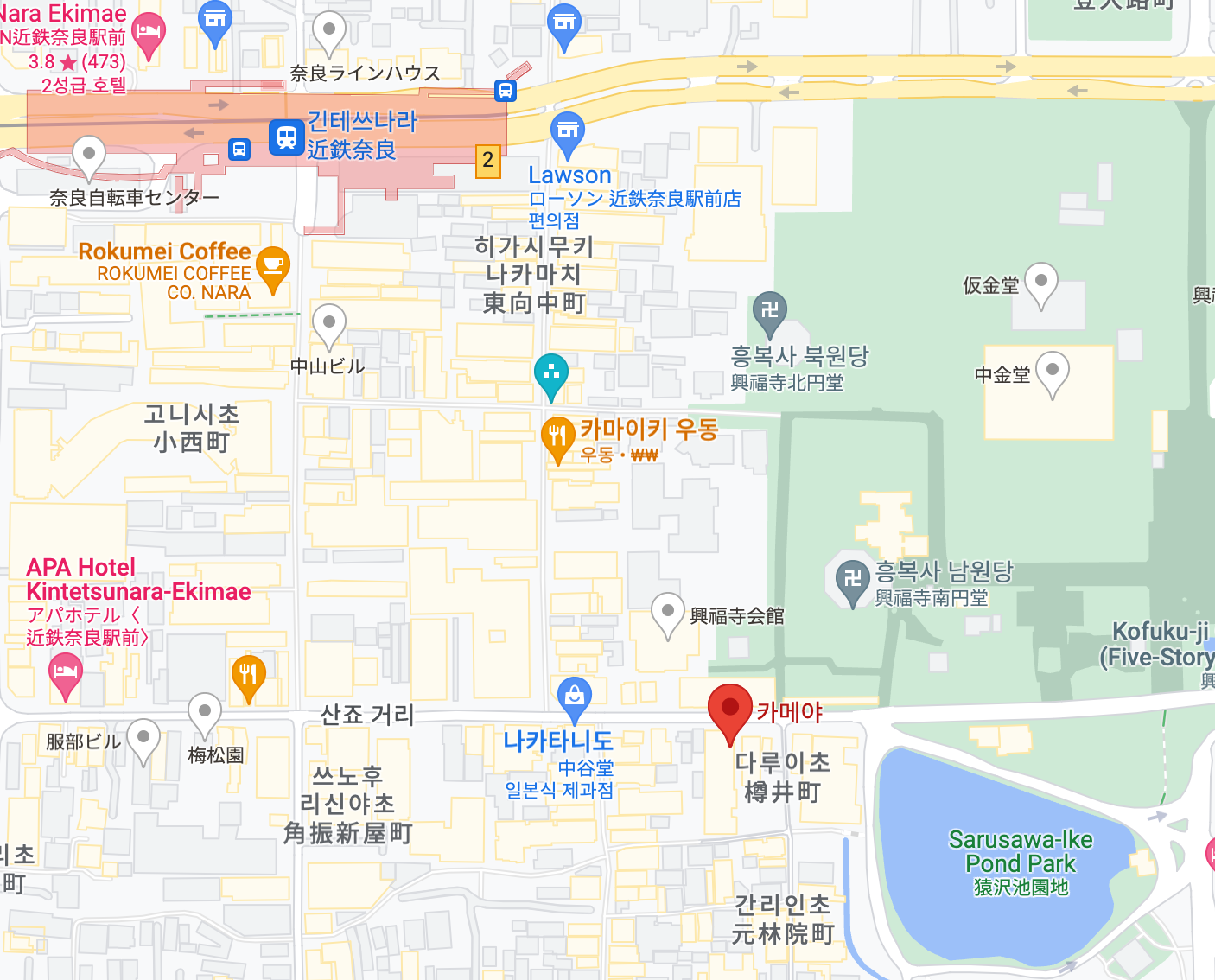 나라의 호수공원, 스타벅스 앞 "카메야" 라는 곳입니다.