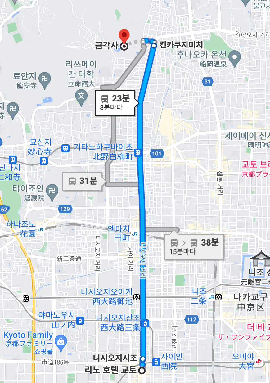 바로 금각사로 올라가는 길이 있습니다