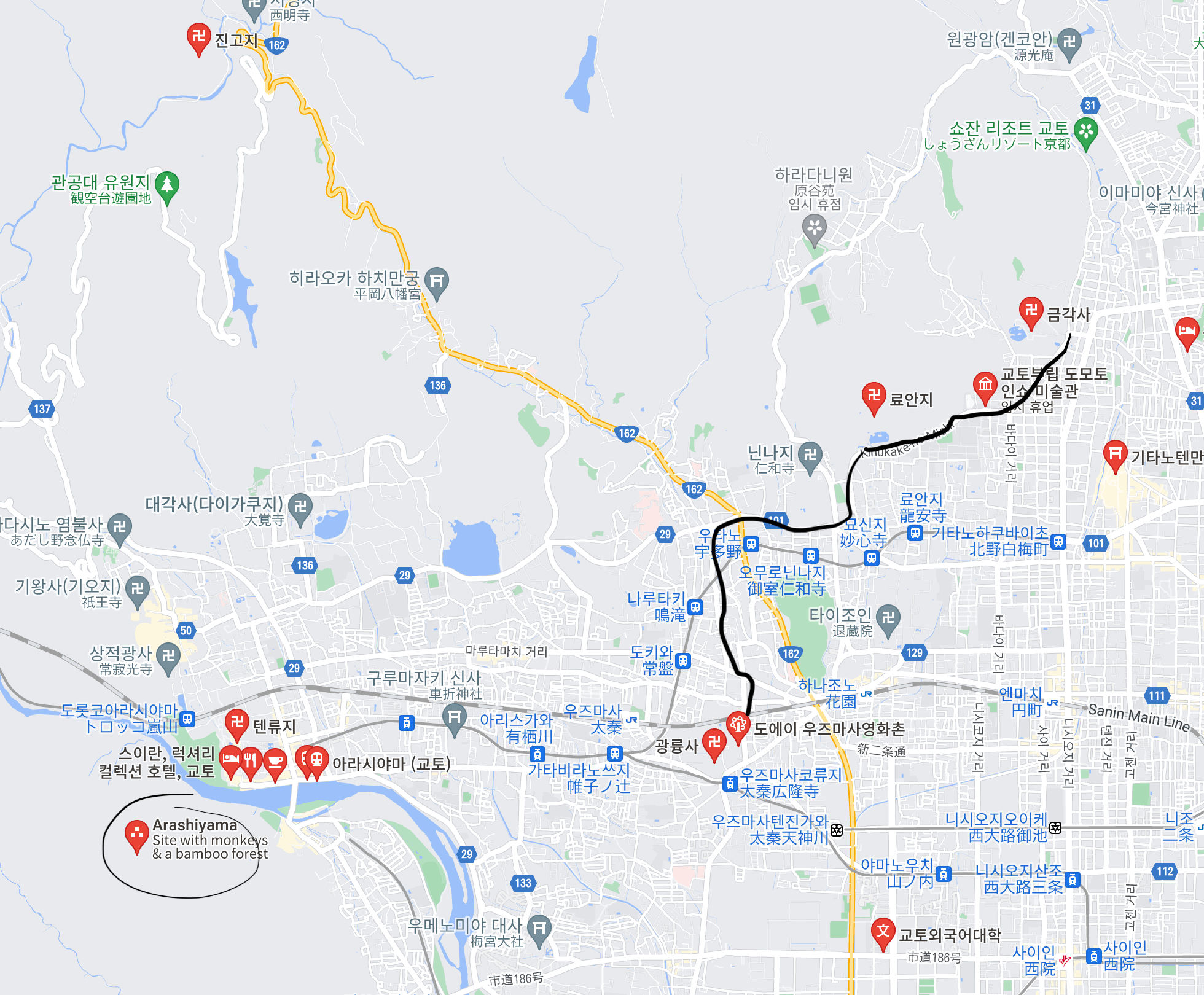 금각사부터 이 경로까지