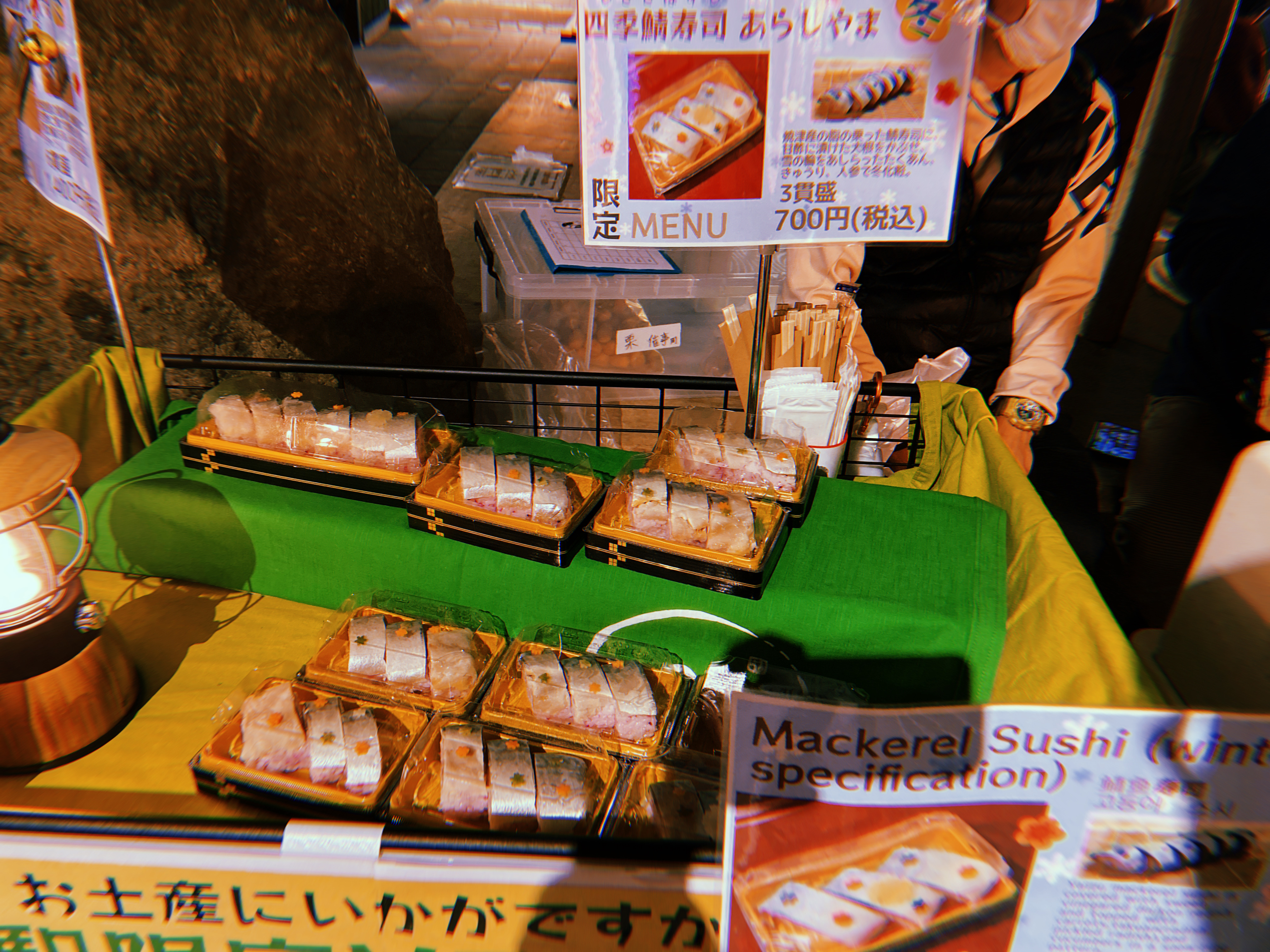 앞에서 고등어초밥을 3피스 700엔에 판매하는데.