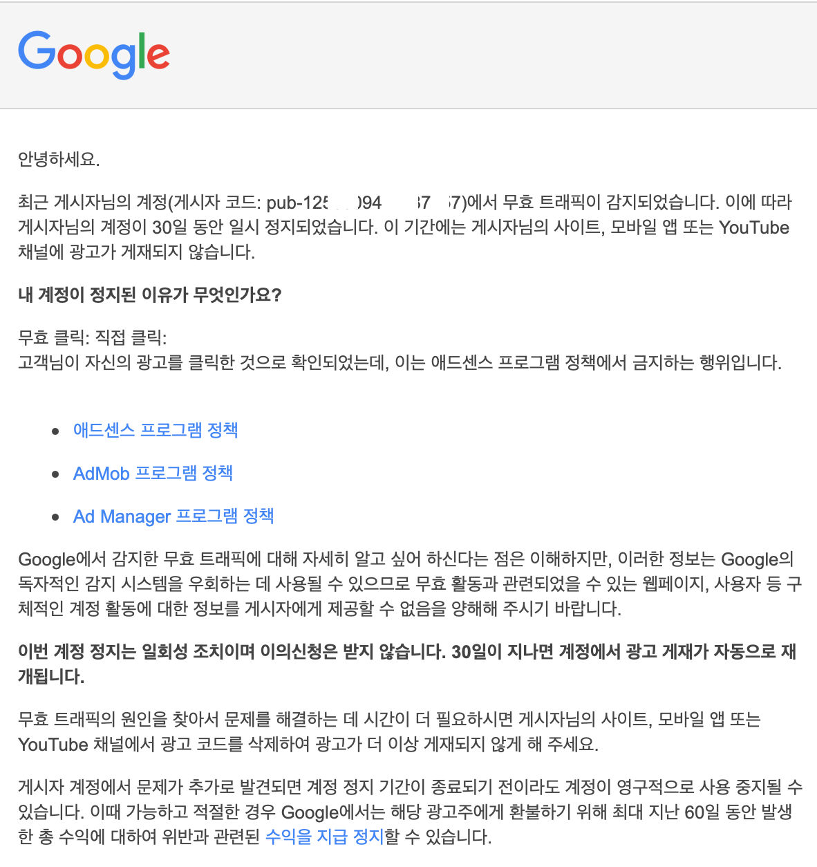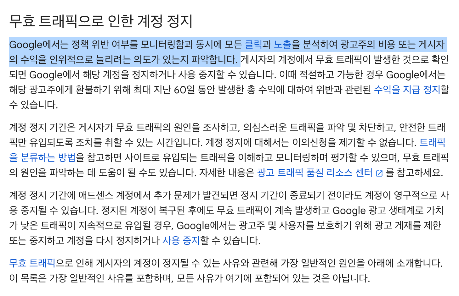 누가 보더라도 수익을 위한 반복적인 클릭과 노출을 시키게 되면 그 때 무효 트래픽 적용을 시키는 듯 합니다..