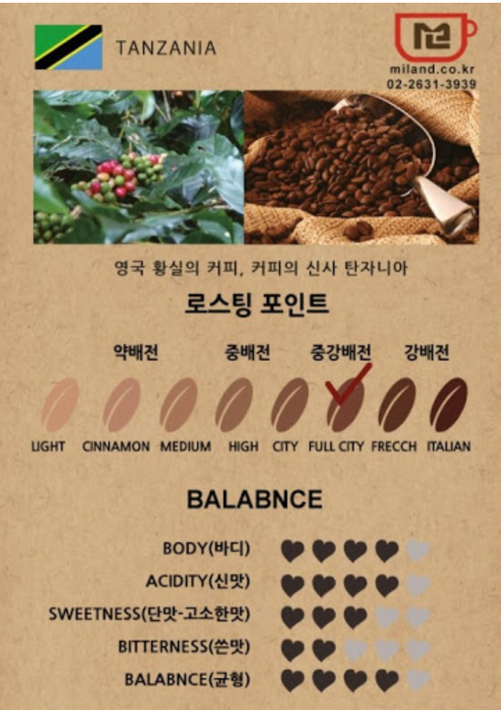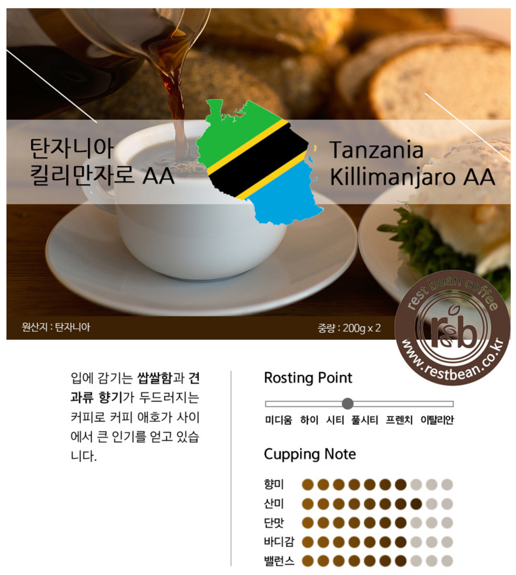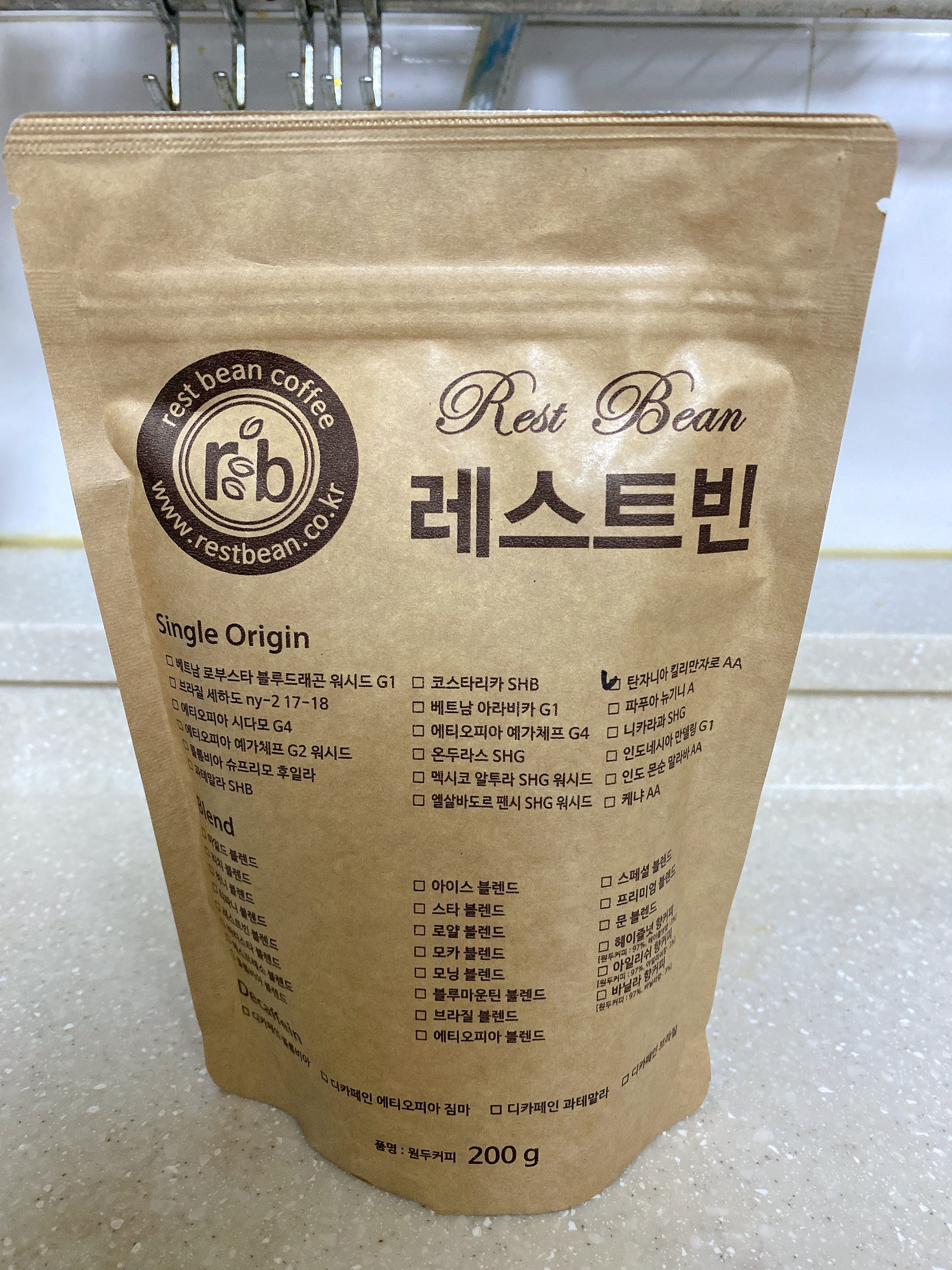 이번에 레스트빈에서 구매한 탄자니아 킬리만자로 AA 원두 입니다.
