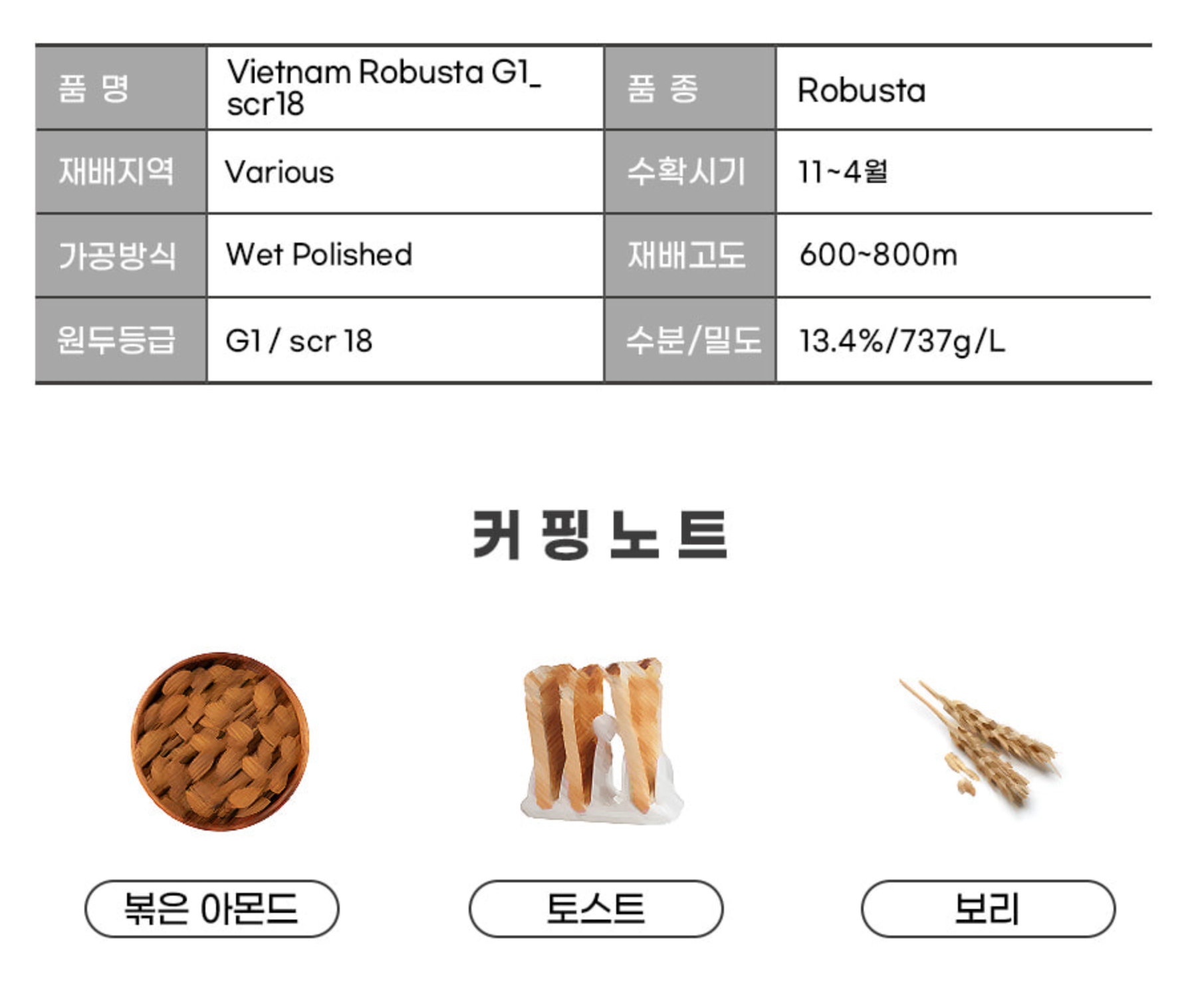 오늘 소개드릴 커피는 커피창고 사 의 베트남 로부스타 G1 입니다.
