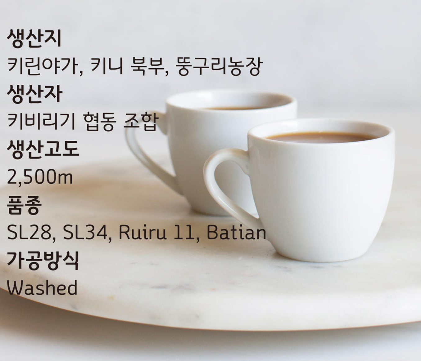 [ 커피동경 싱글오리진 커피 ] 케냐 뚱구리 AA Top• CUP NOTE : 리치, 살구, 바닐라, 초컬릿, 좋은 밸런스, 클린컵• 생산지역 : 케냐 키린야가 키니 북부 뚱구리농장• 생산자 : 키비리기 협동 조합•