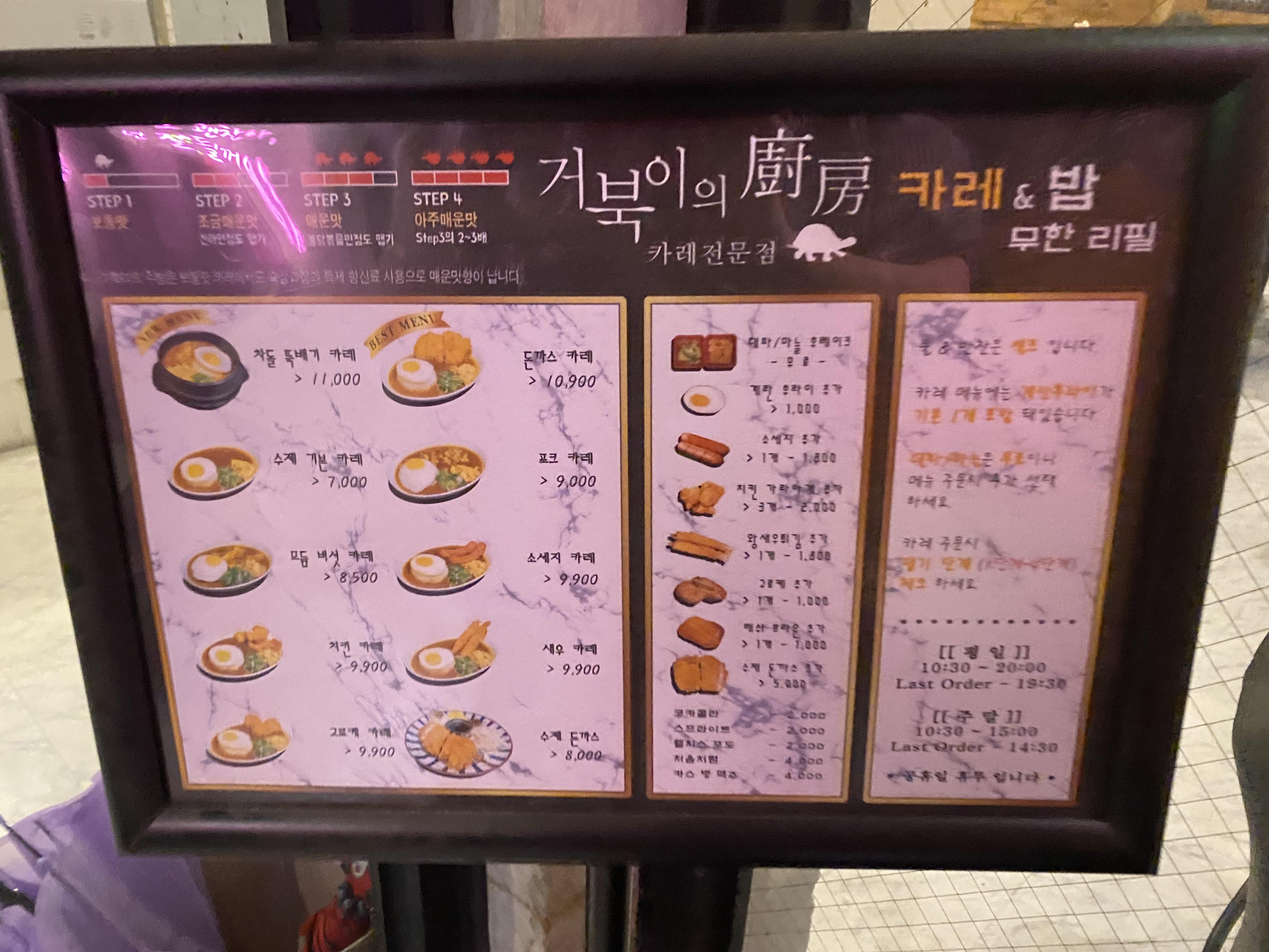 저는 매운맛 (3단계)로 골랐고 소세지도 추가했습니다!