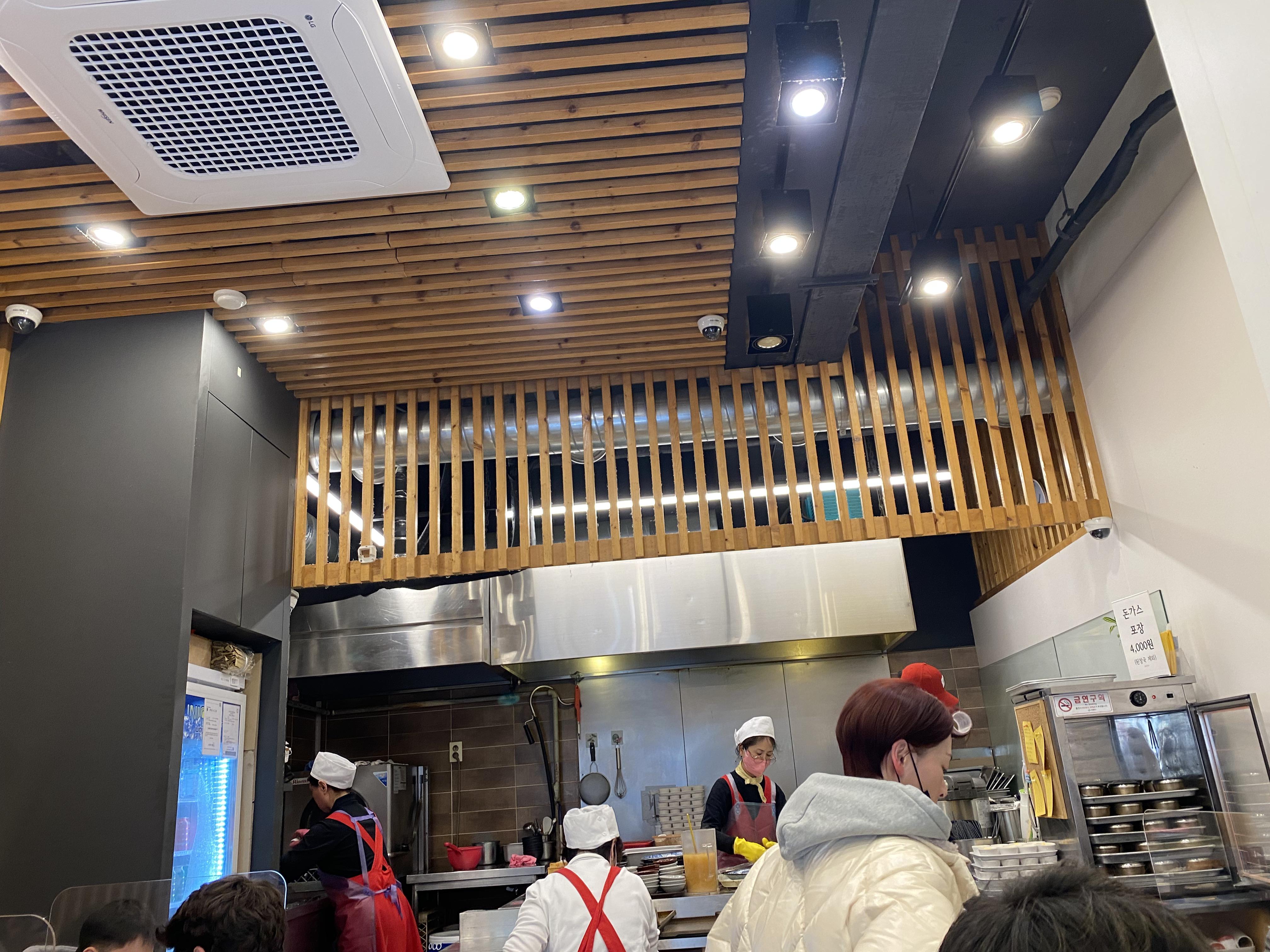 안은 굉장히 분주하고 메뉴는 돈까스 하나 뿐입니다.