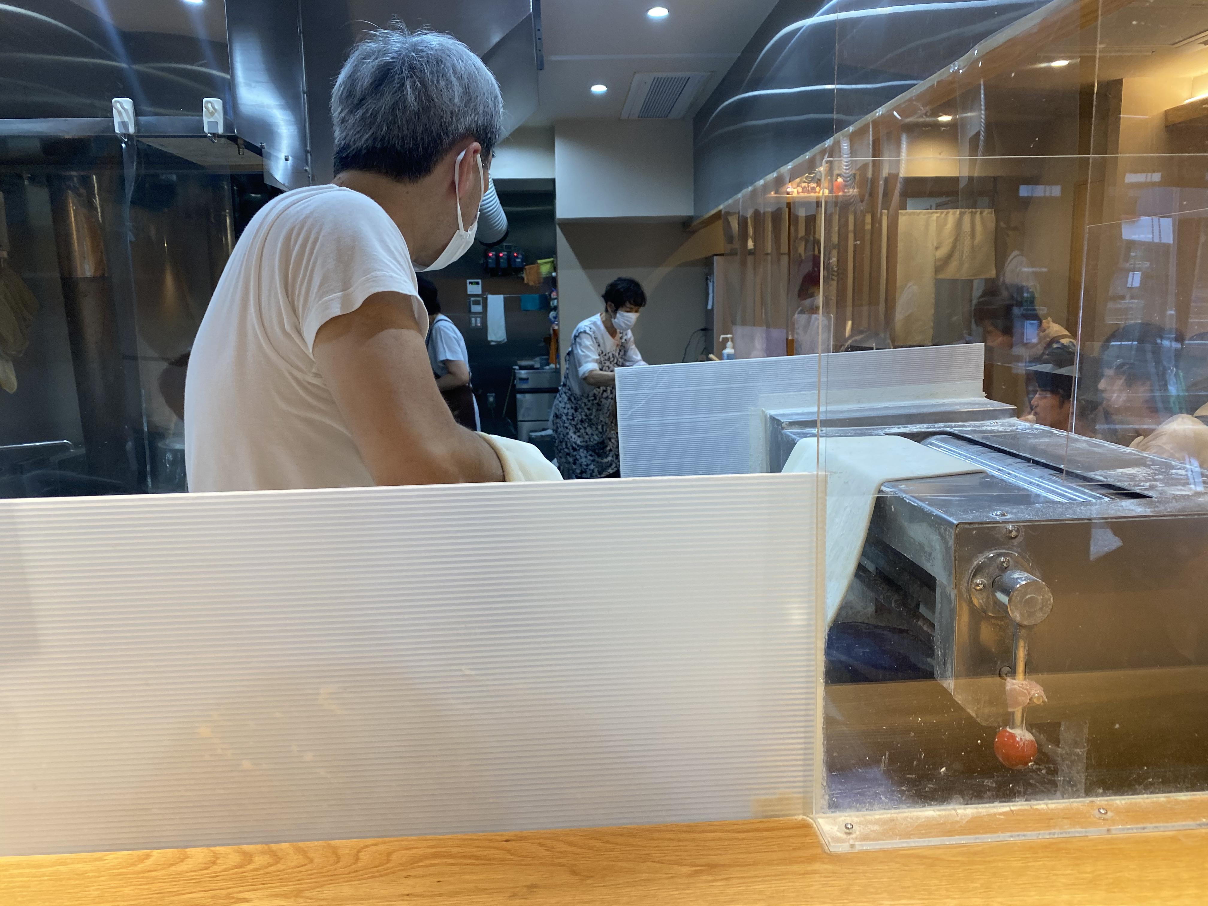 앞에서 사장님이 주문이 들어오면 직접 제면을 하시는걸 바로 뽑아서 삶는 방식입니다