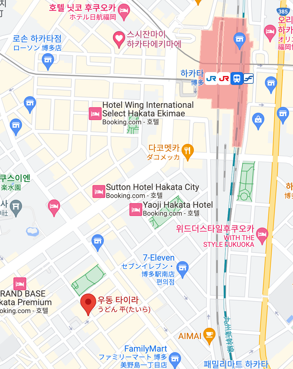 하카타역 바로 밑에 15분정도 걸어가면 있는데