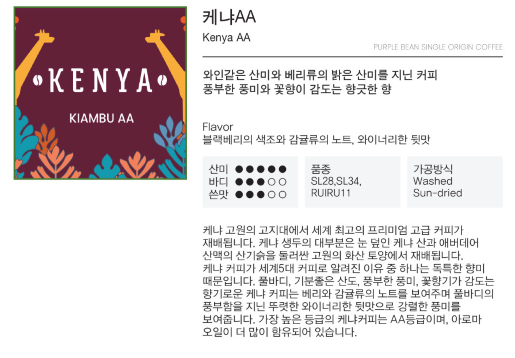 퍼플빈커피 케냐AA 프리미엄 고급원두 좋은원두 당일로스팅 신선한커피 : 퍼플빈커피