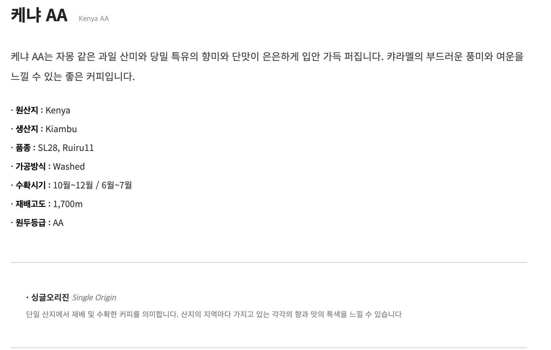 가장 유명하고 가장 많이 사랑받는 대표적인 커피중 하나인 "케냐 AA" 입니다.