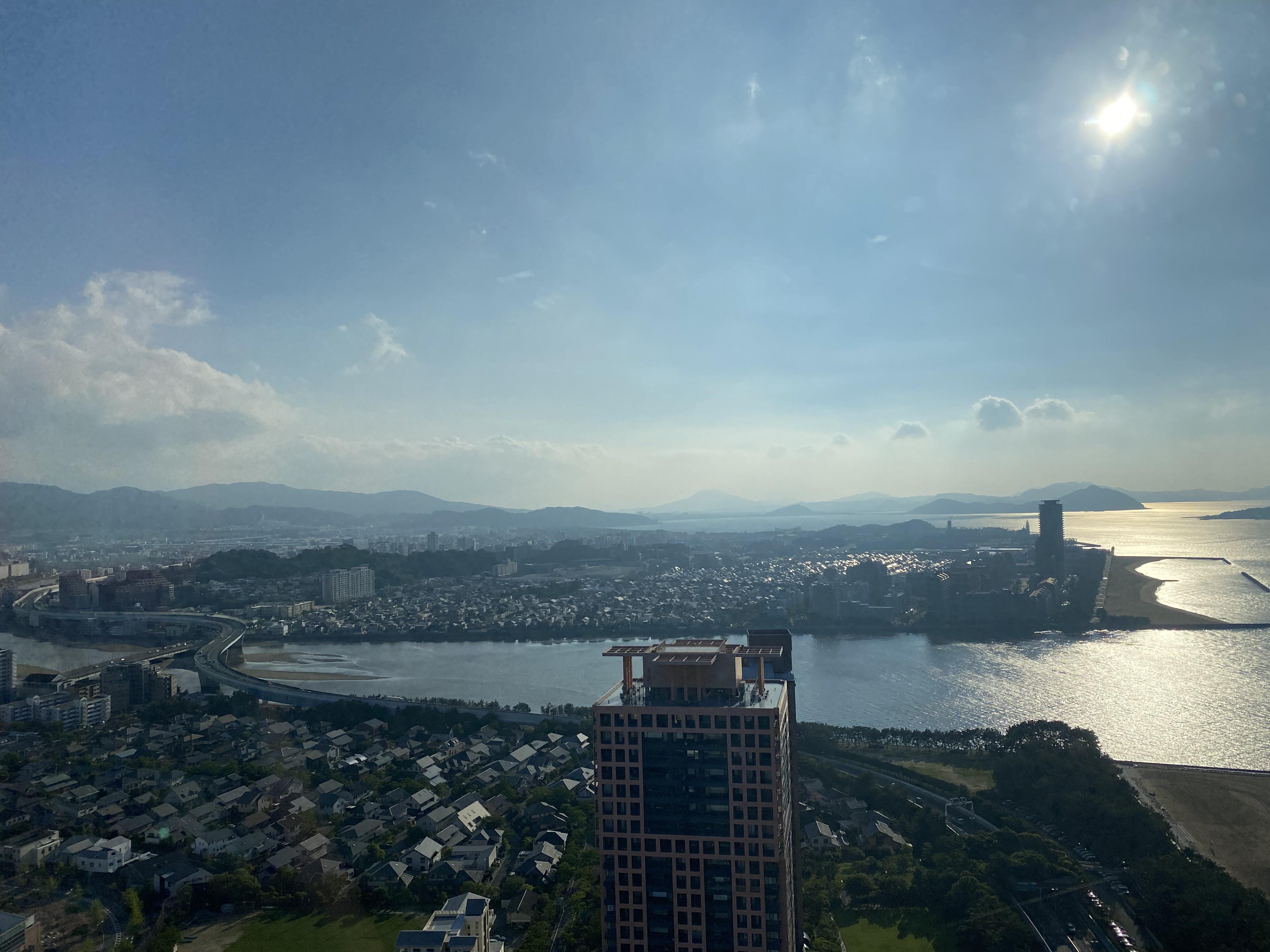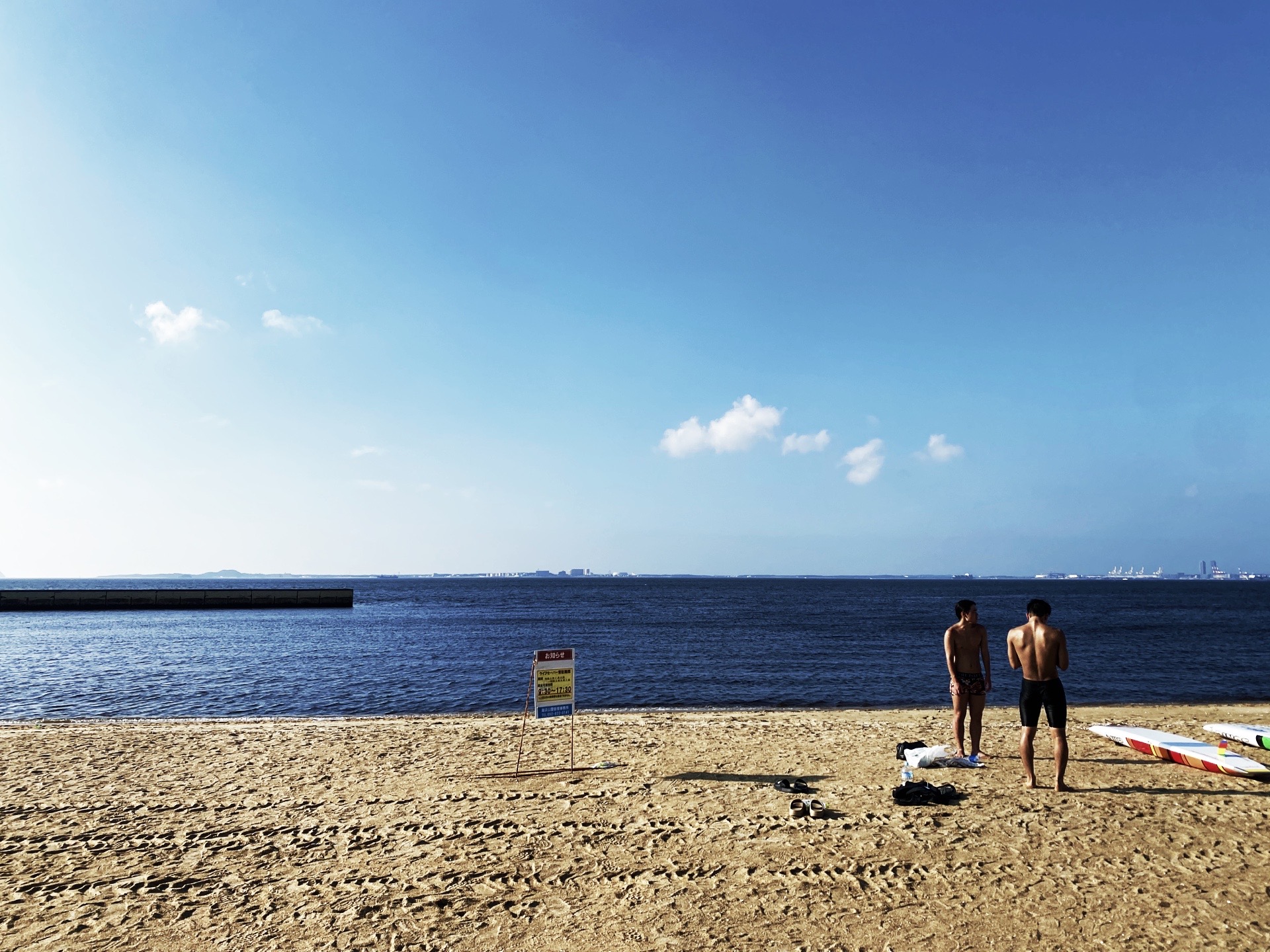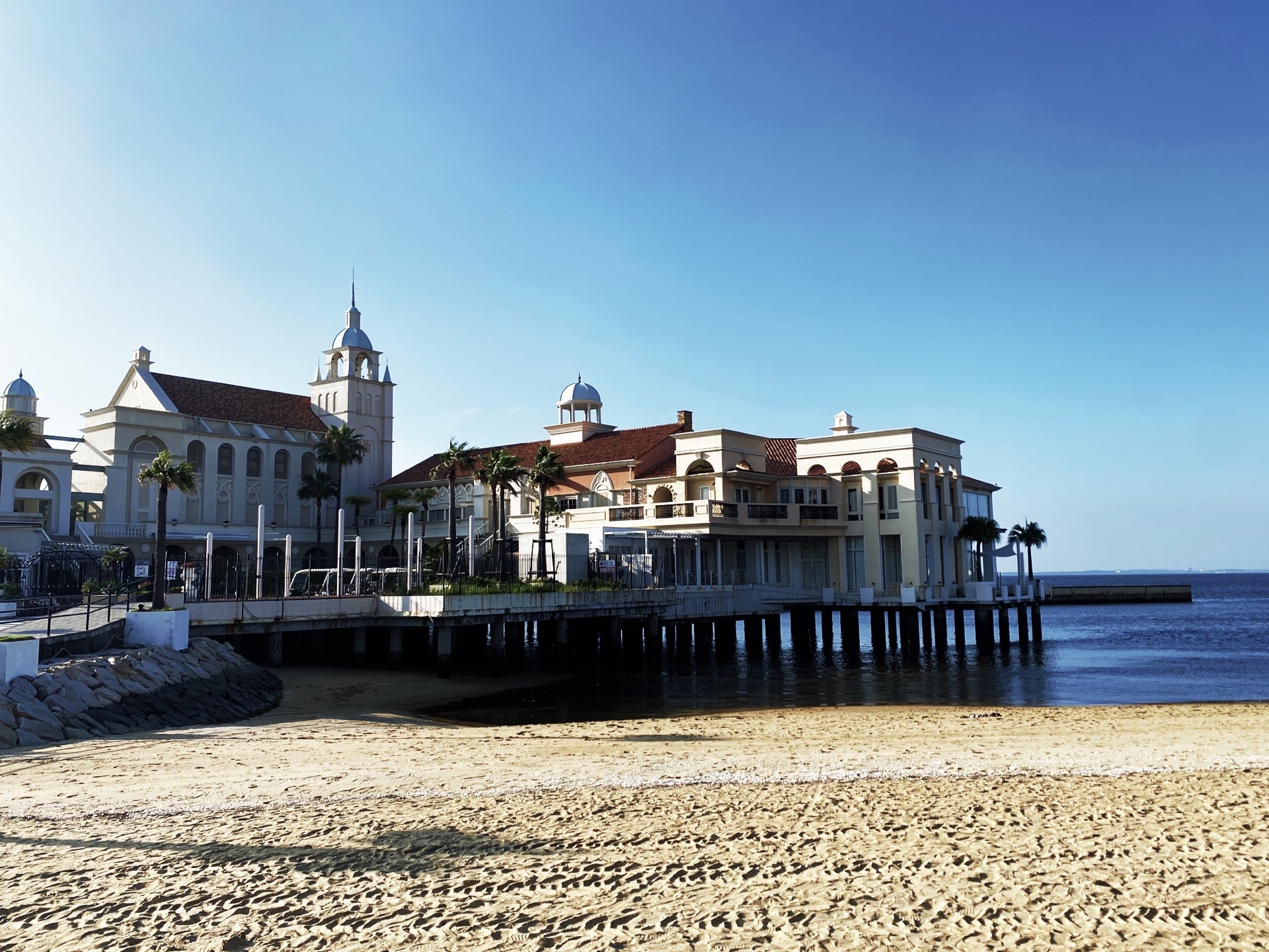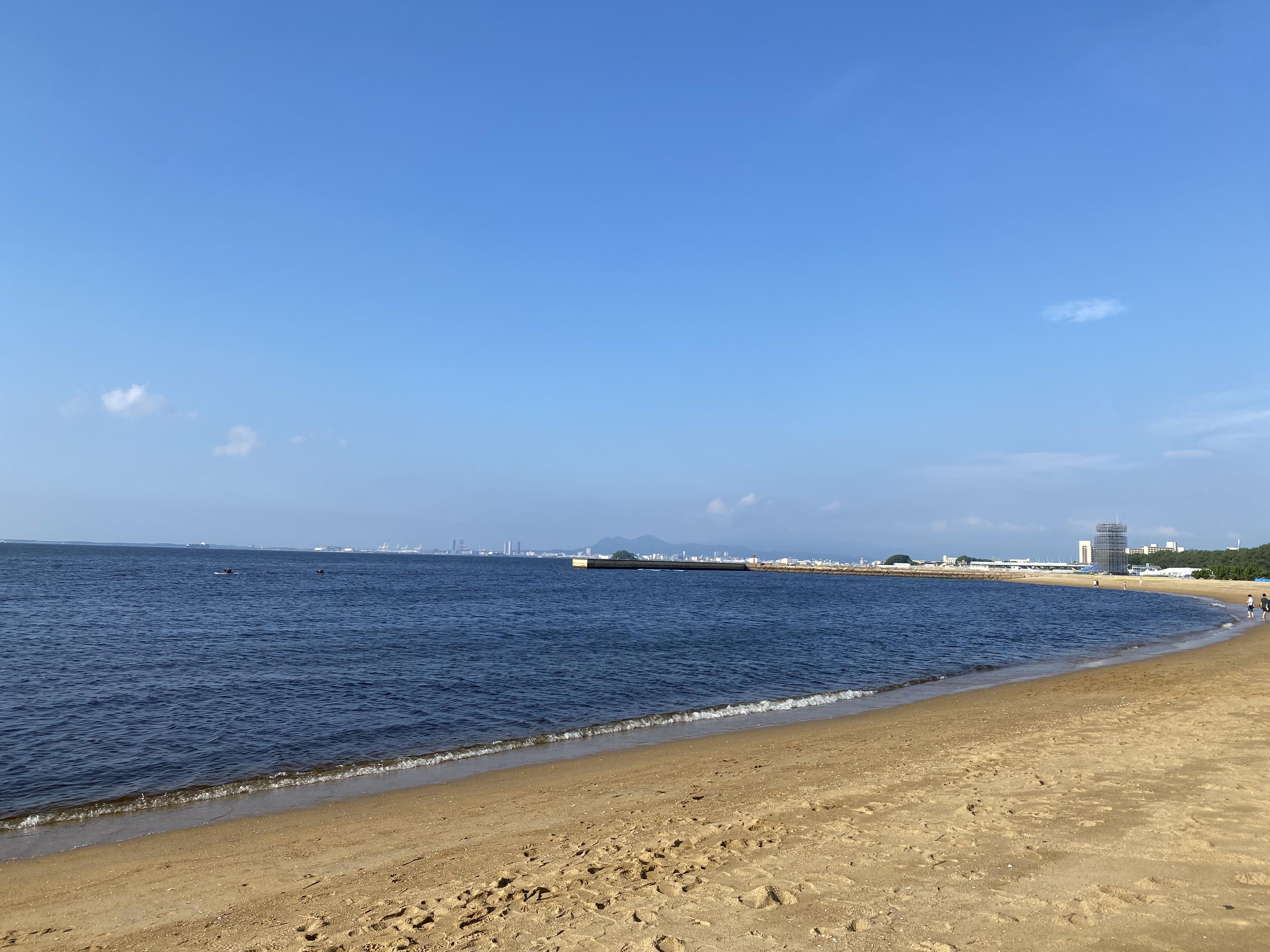 후쿠오카시 해변공원 이라고 한자로 적혀있는 구조물이 보입니다.