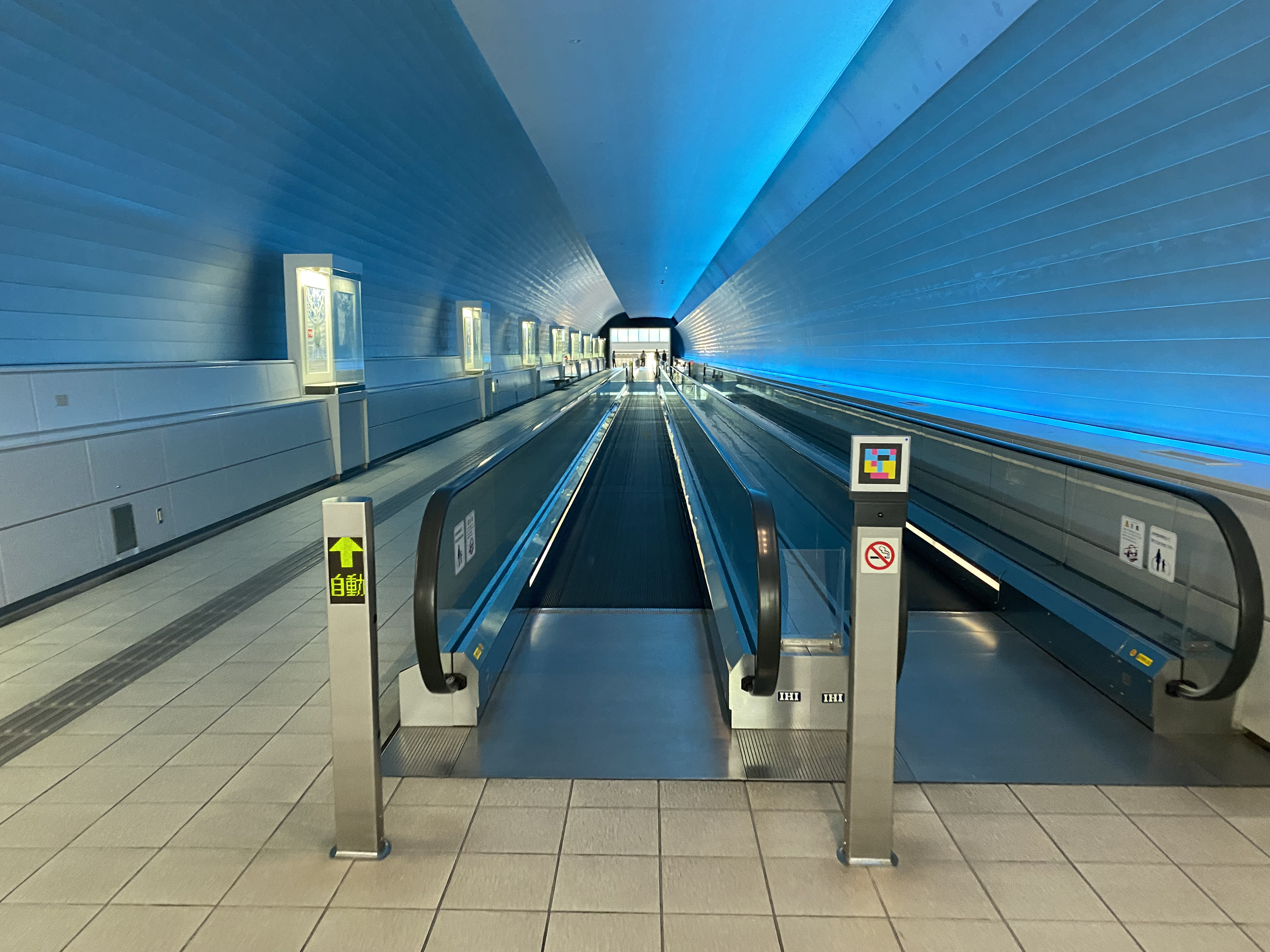 에스컬레이터를 타고 쭉 올라가는 길이 있습니다.