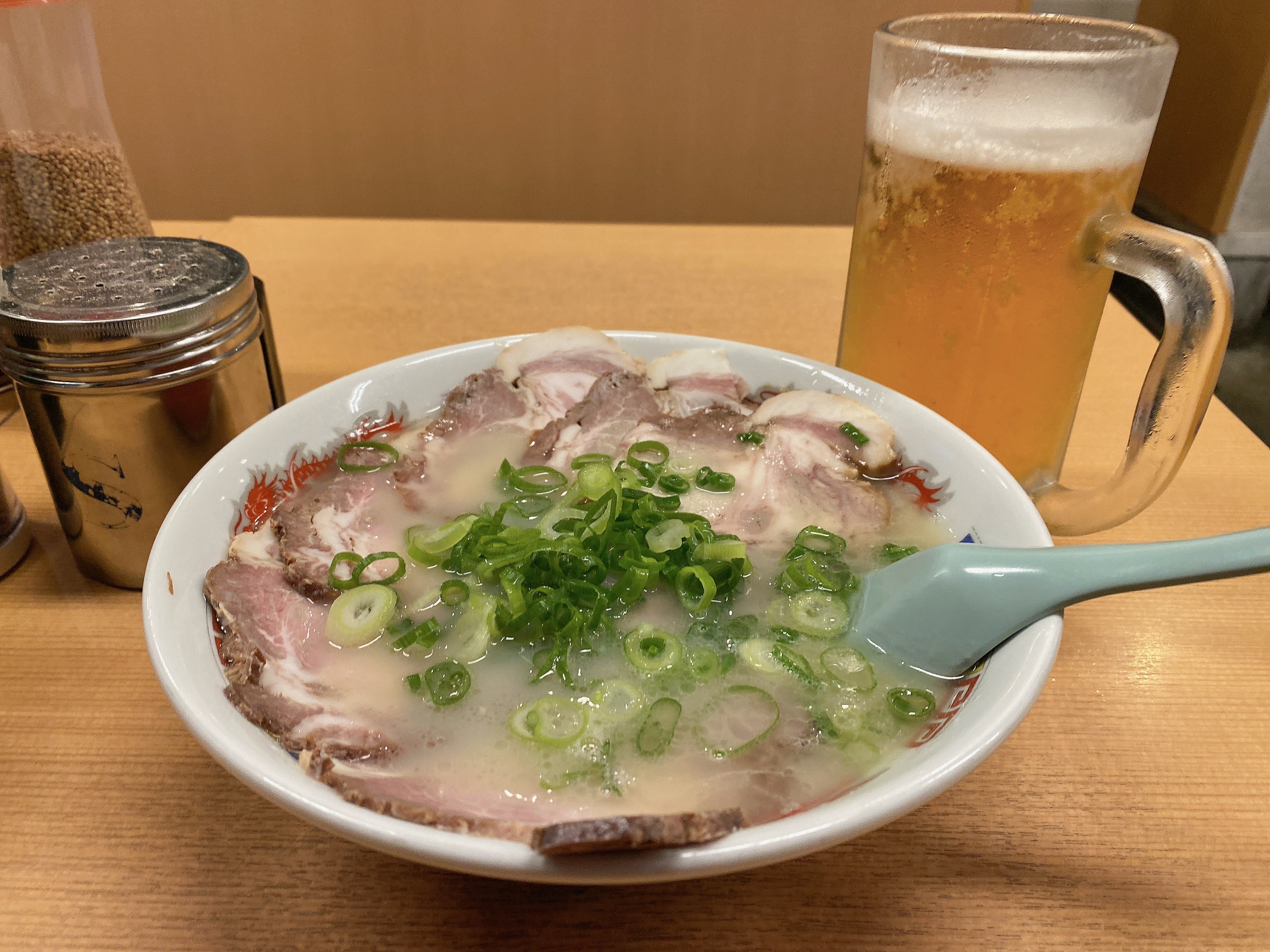 차슈 곱배기 라멘에 토핑 추가, 술안주로 물만두까지 추가해 생맥주까지 시켰는데