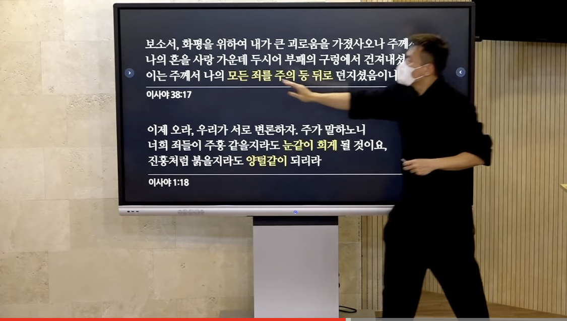 원래는 우리의 죄가 하나님의 얼굴 앞에 있어 가린다고 하였는데 죄사함을 받은 후 그것들을 모두 하나님의 등 뒤로 던져버렸다 하십니다.