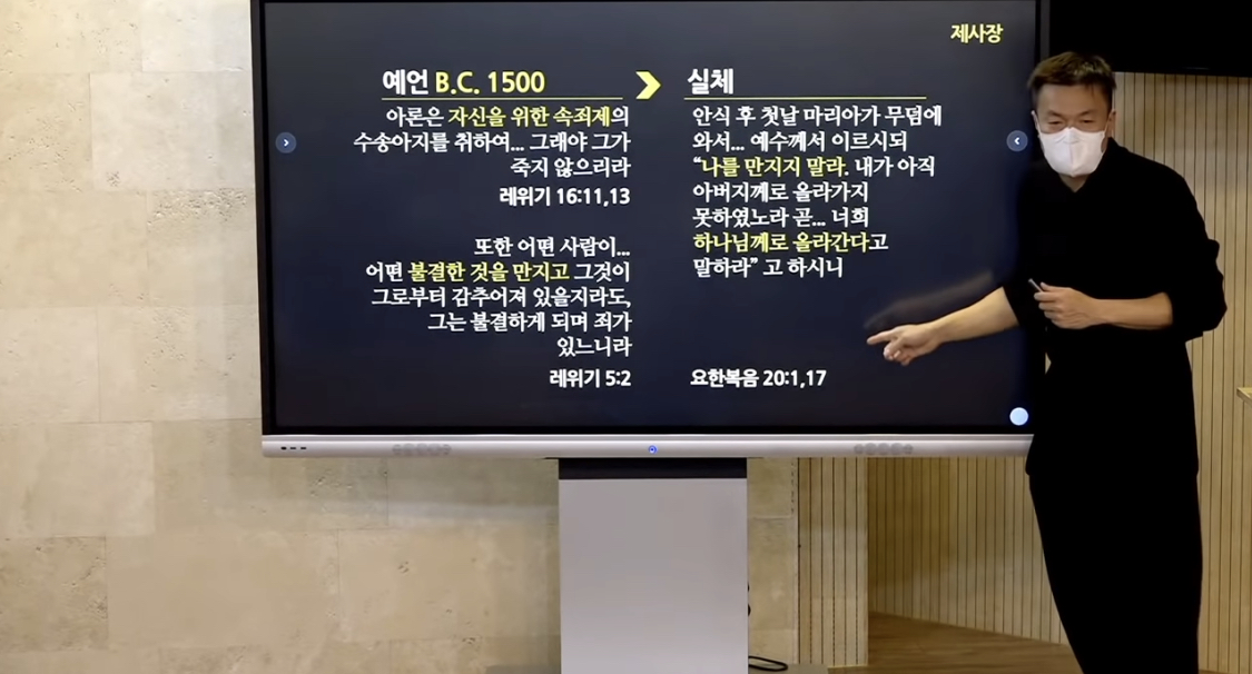 그렇기 때문에 예수님께서 부활하시고 아직 하나님께 가지 못하여 마리아에게 자신을 만지지 말라고 말씀하셨던 것입니다. 죄가 있는 상태로는 하나님과 단절되어있는 상태이기 때문입니다.