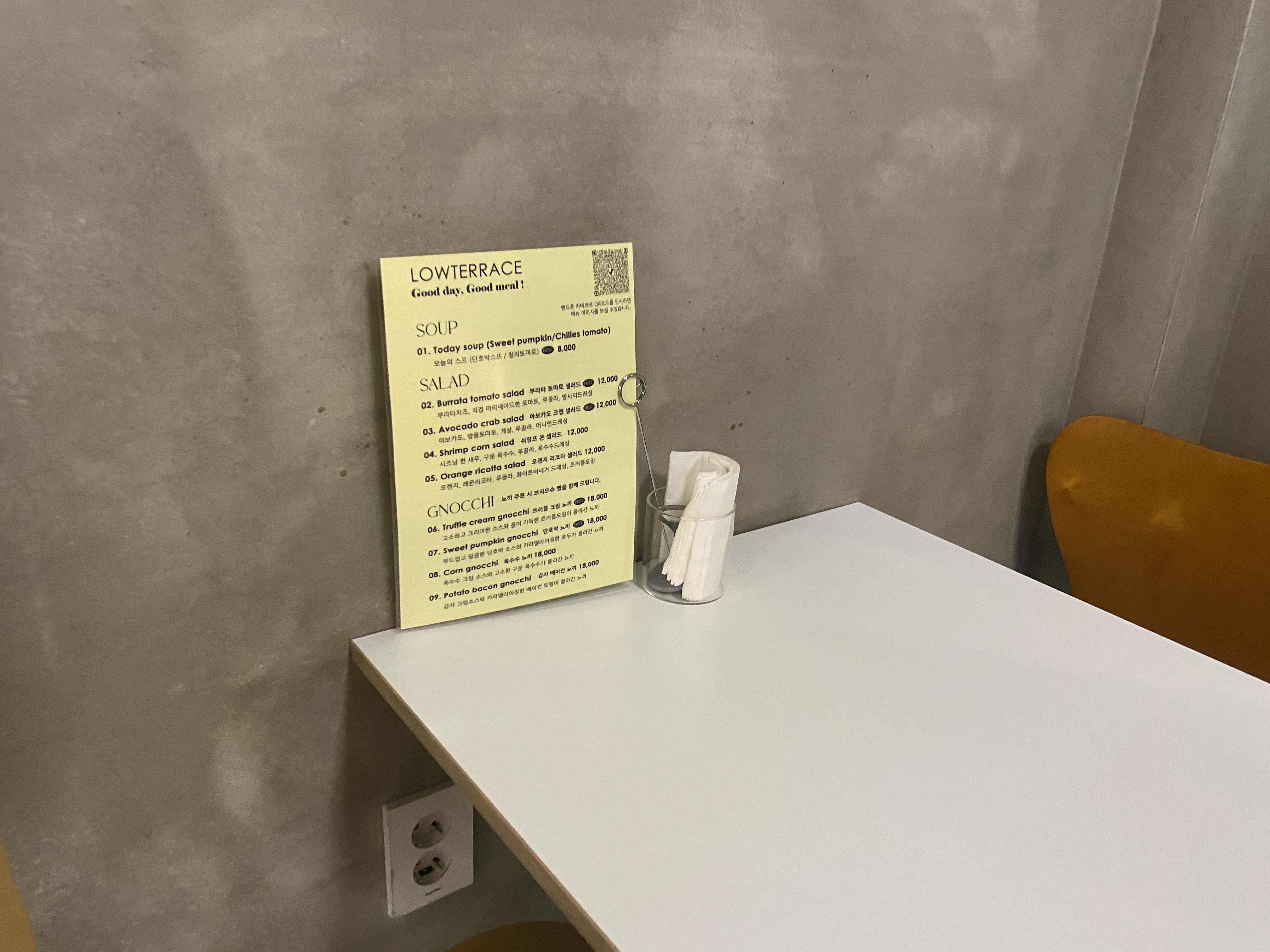 테이블 별 메뉴판과 함께