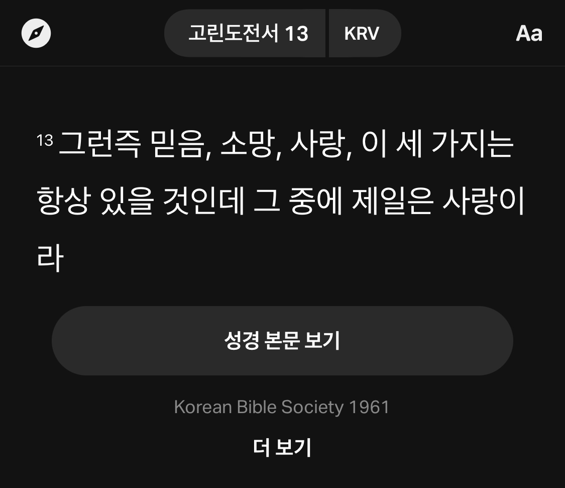 그래서 고린도전서 13장 13절에 이런 말씀이 있죠.