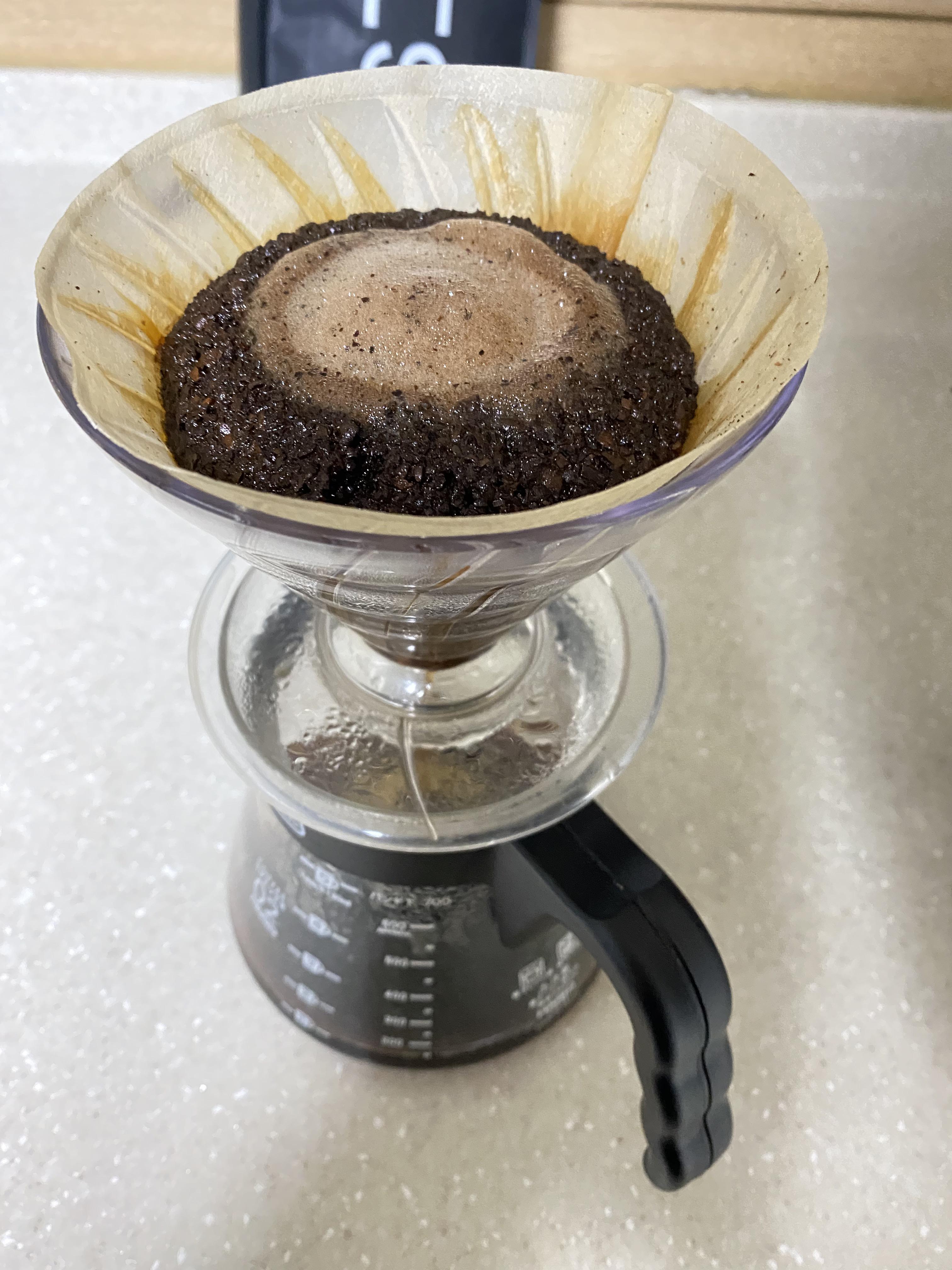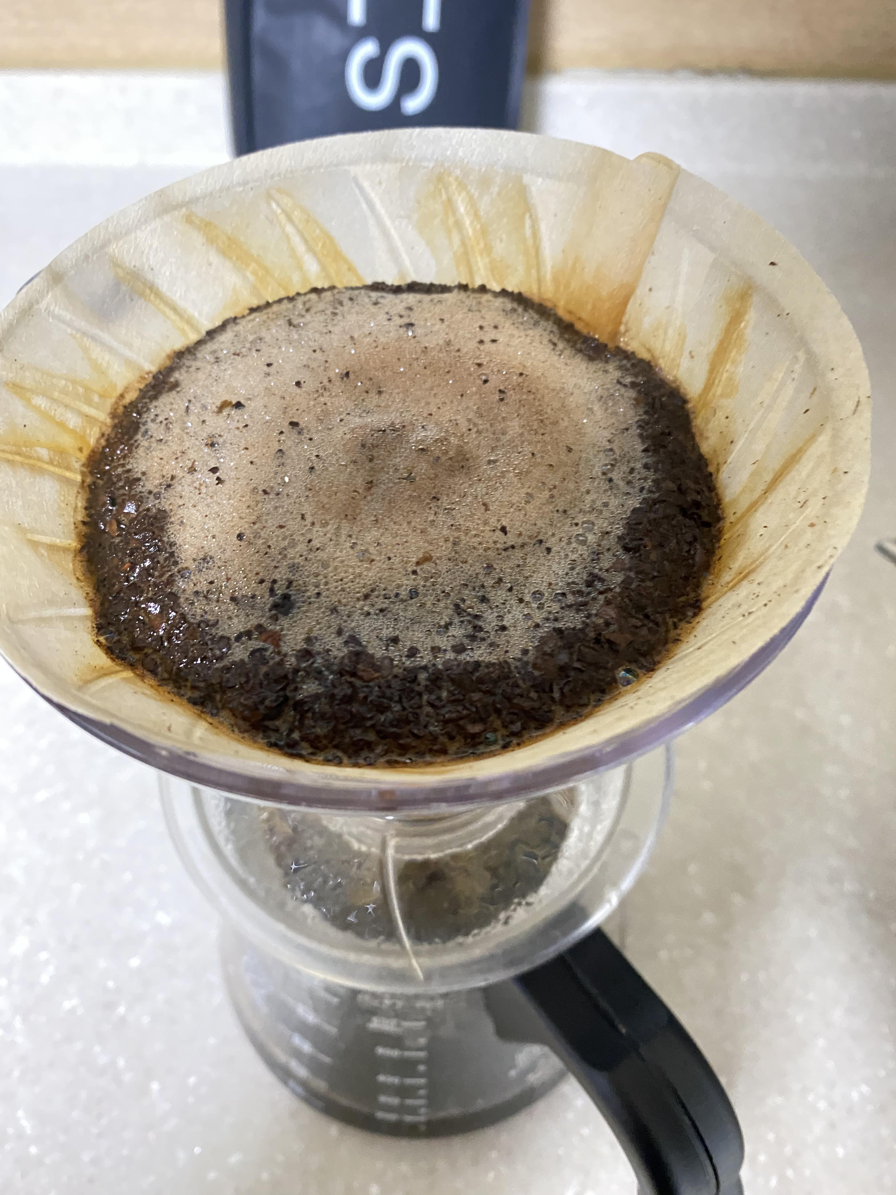 밑에도 커피가 제법 차고, 위에는 성분이 다 추출된 가벼운 원두들이 떠 올라와있음을 확인할 수 있습니다.