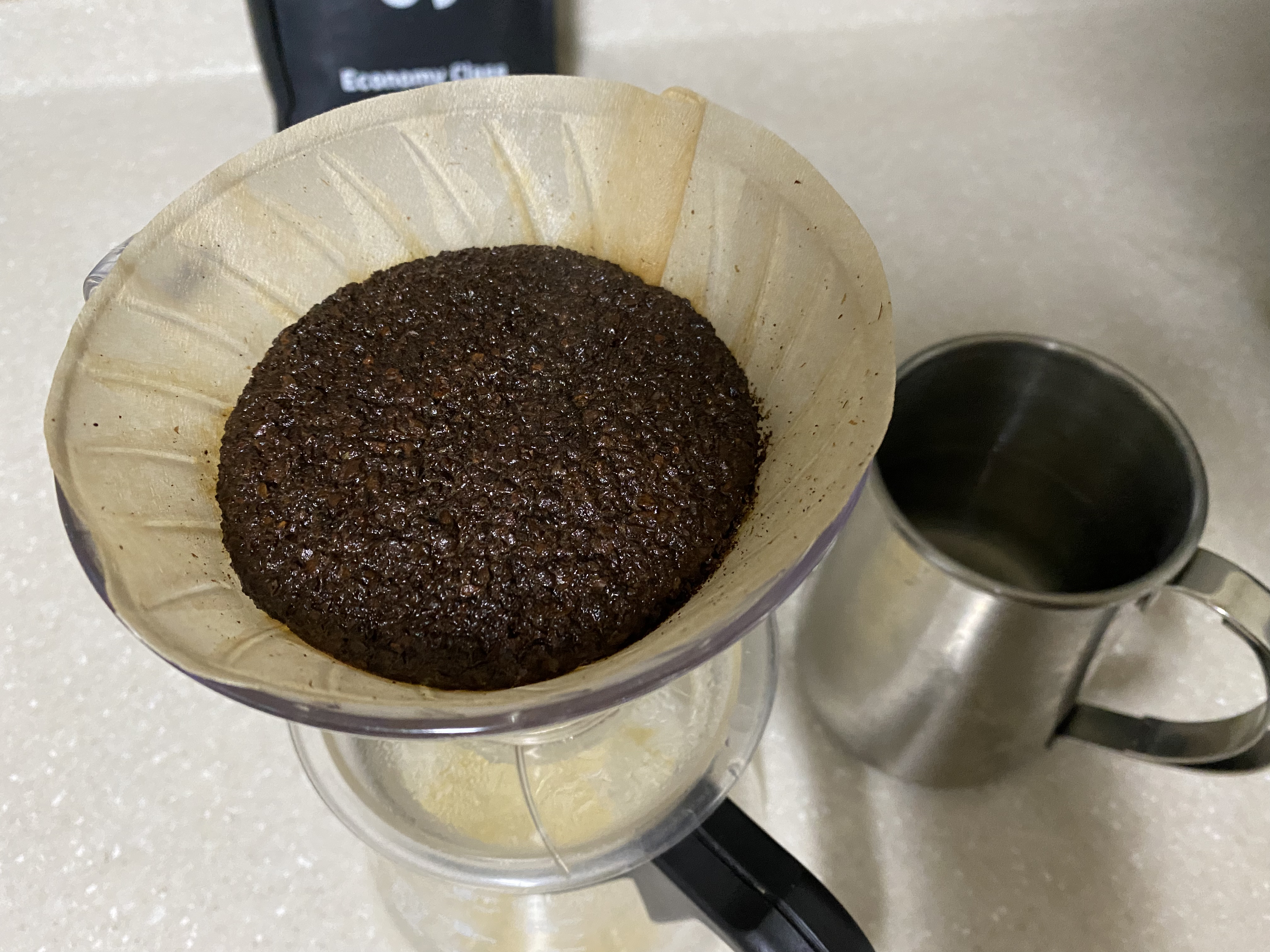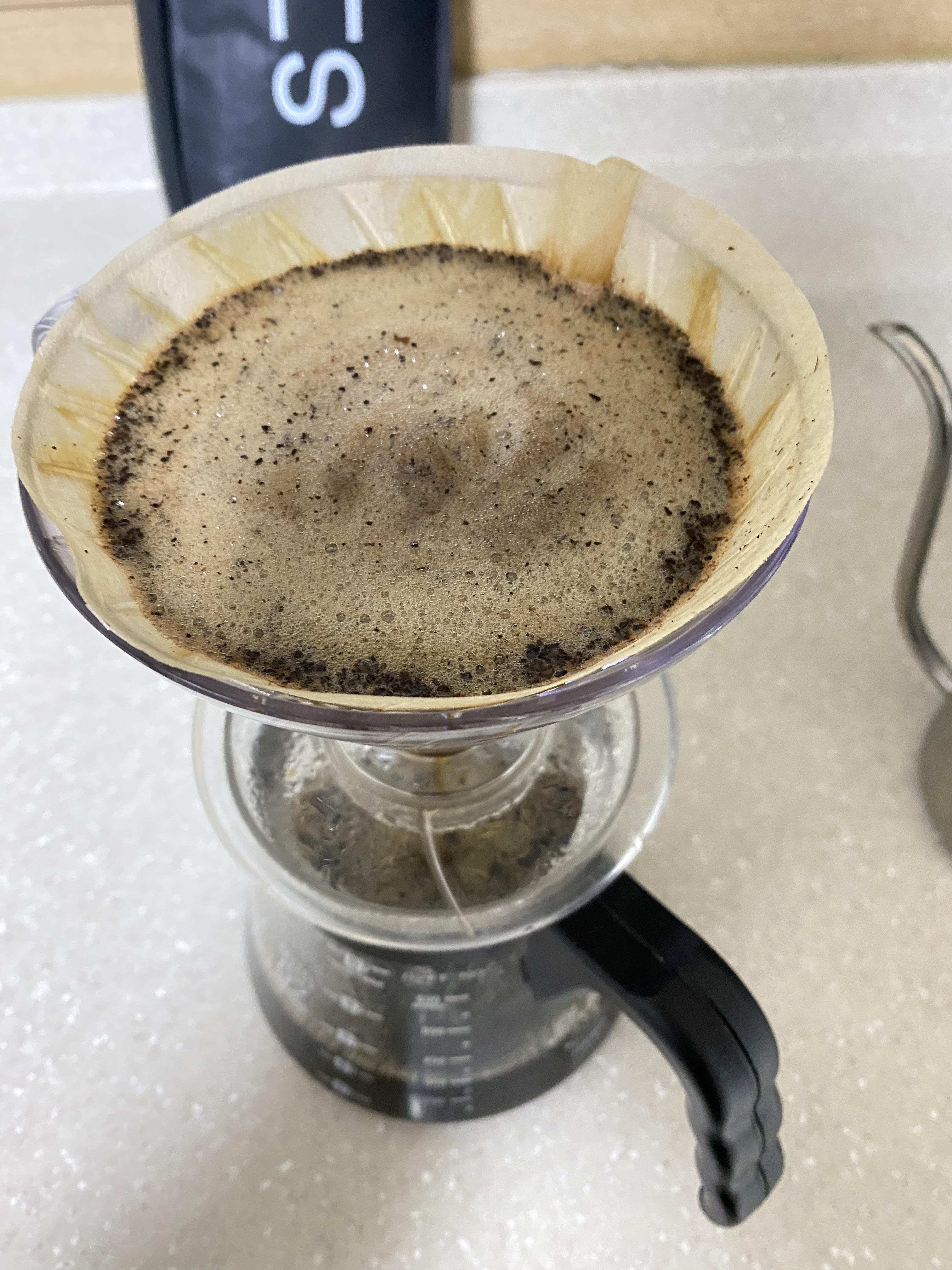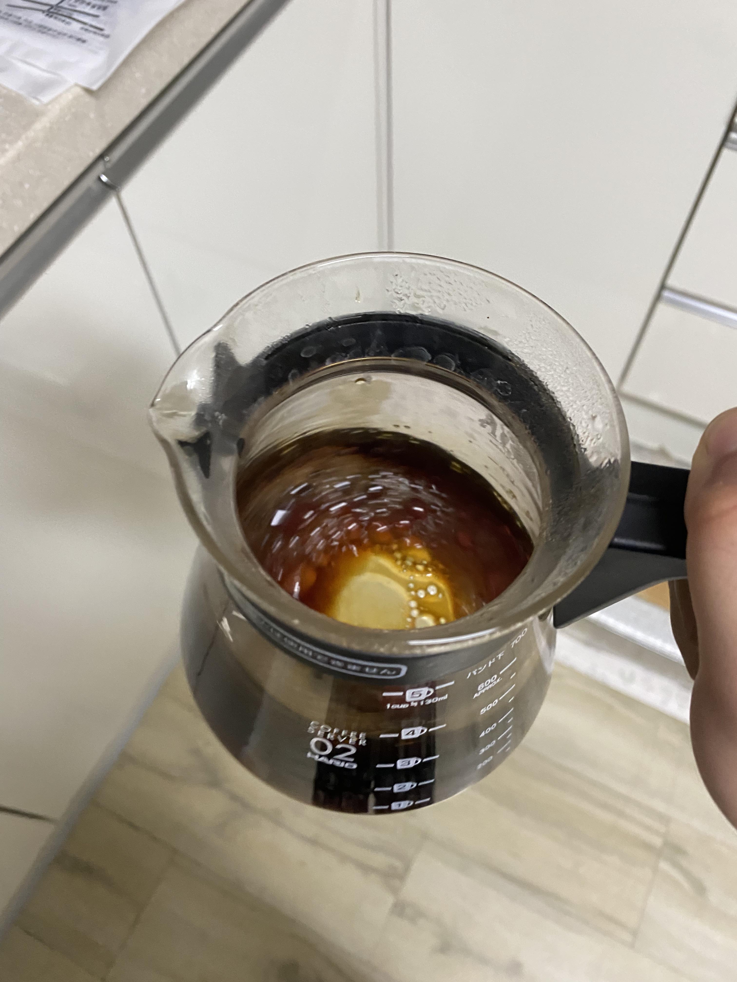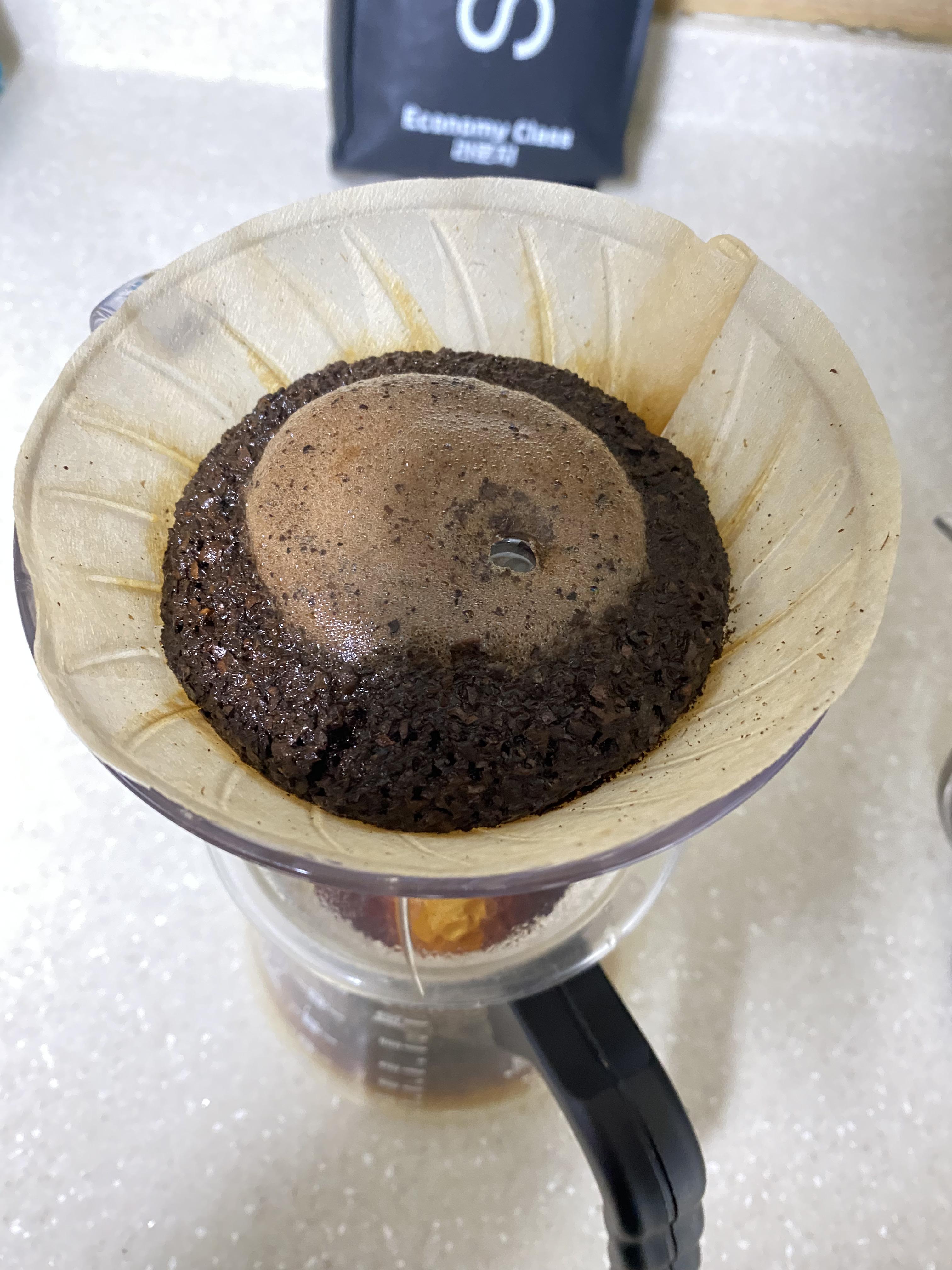 밑에도 커피가 제법 차고, 위에는 성분이 다 추출된 가벼운 원두들이 떠 올라와있음을 확인할 수 있습니다.