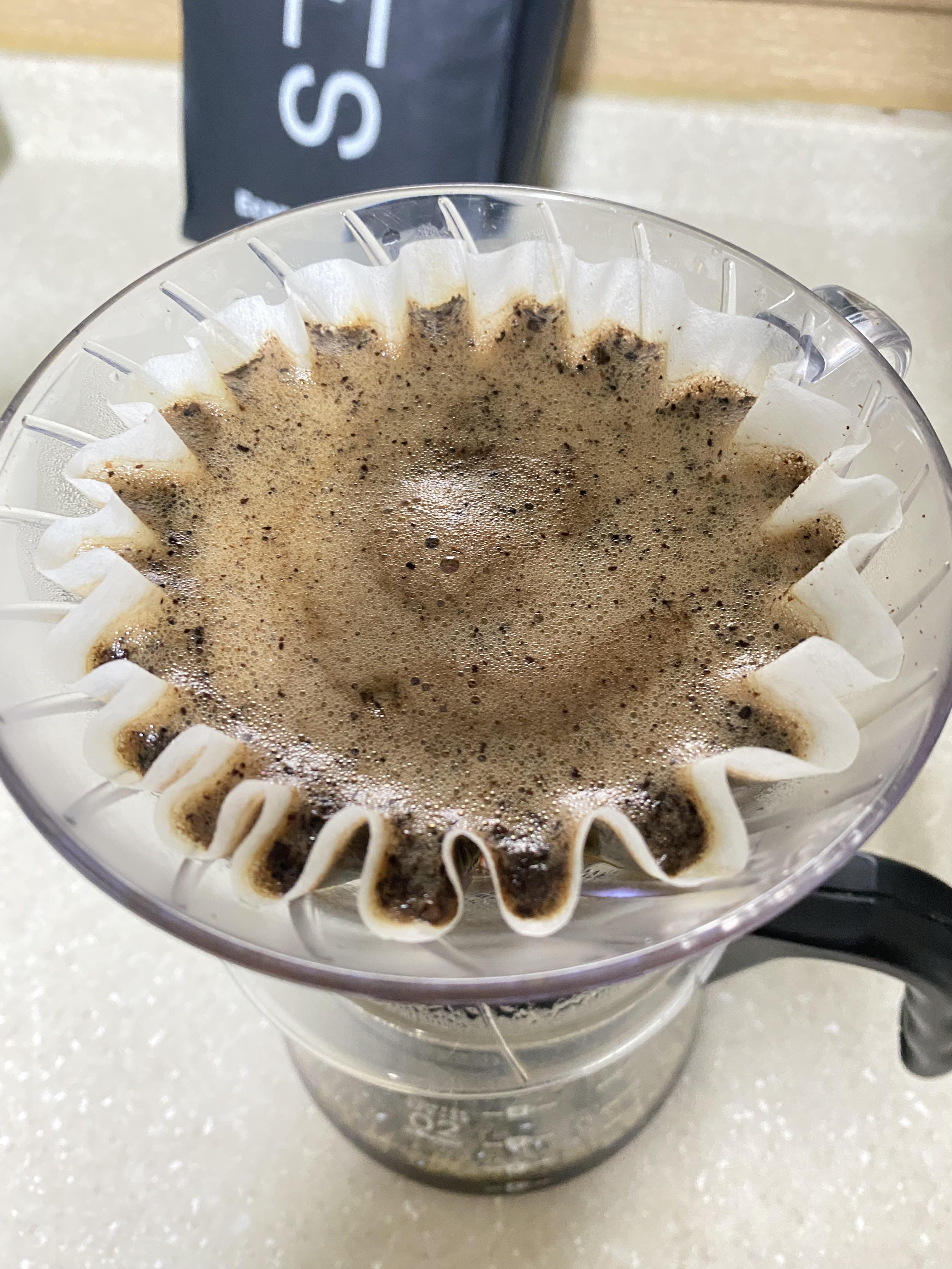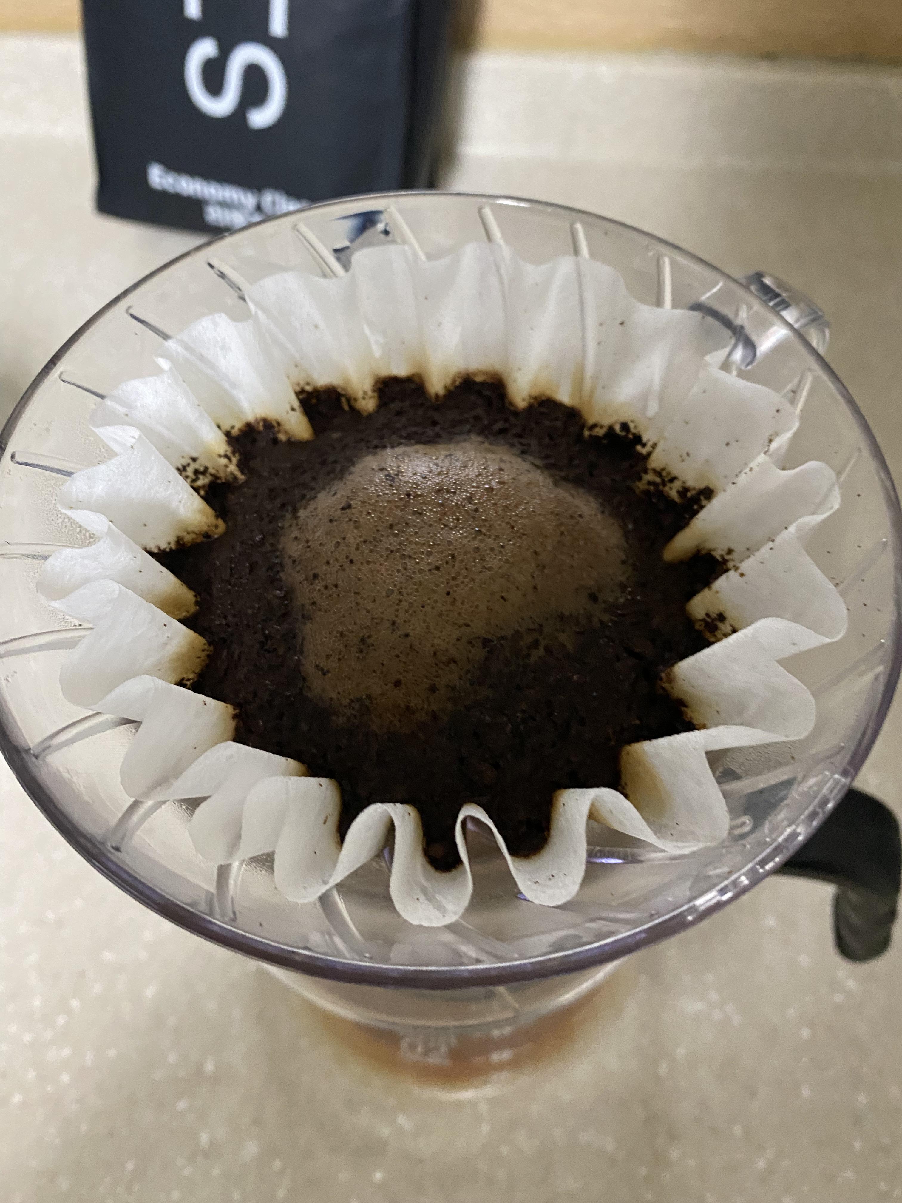 이미 한번 추출되었던 원두에서 다시 추출이 되는걸 최대한 막기 위해서 타이밍과 양, 물을 붓는 위치를 잘 정해주는것이 포인트 입니다.