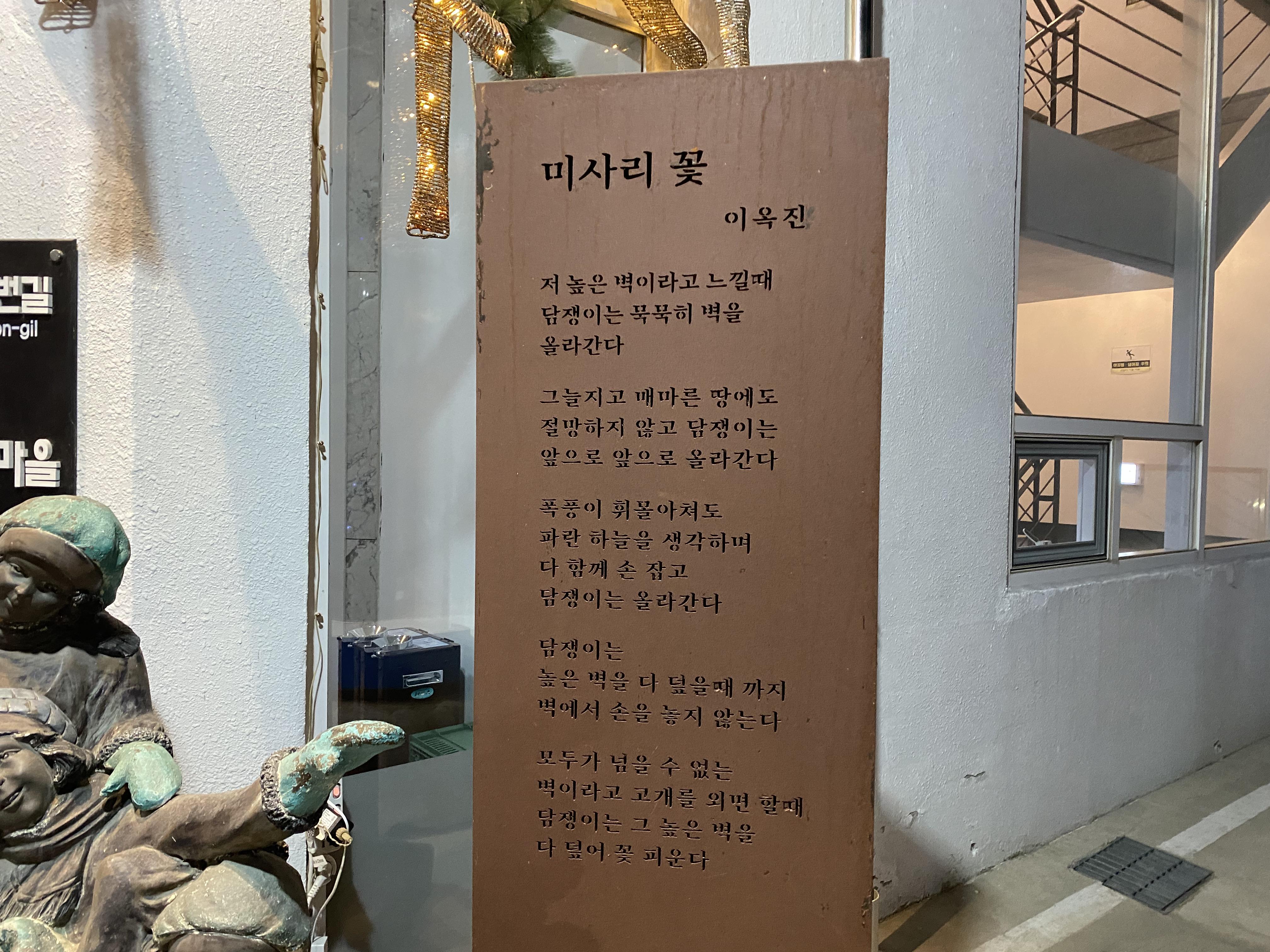 이옥진 님의 그림과 함께 시 한편이 적혀있는 곳을 볼 수 있습니다.