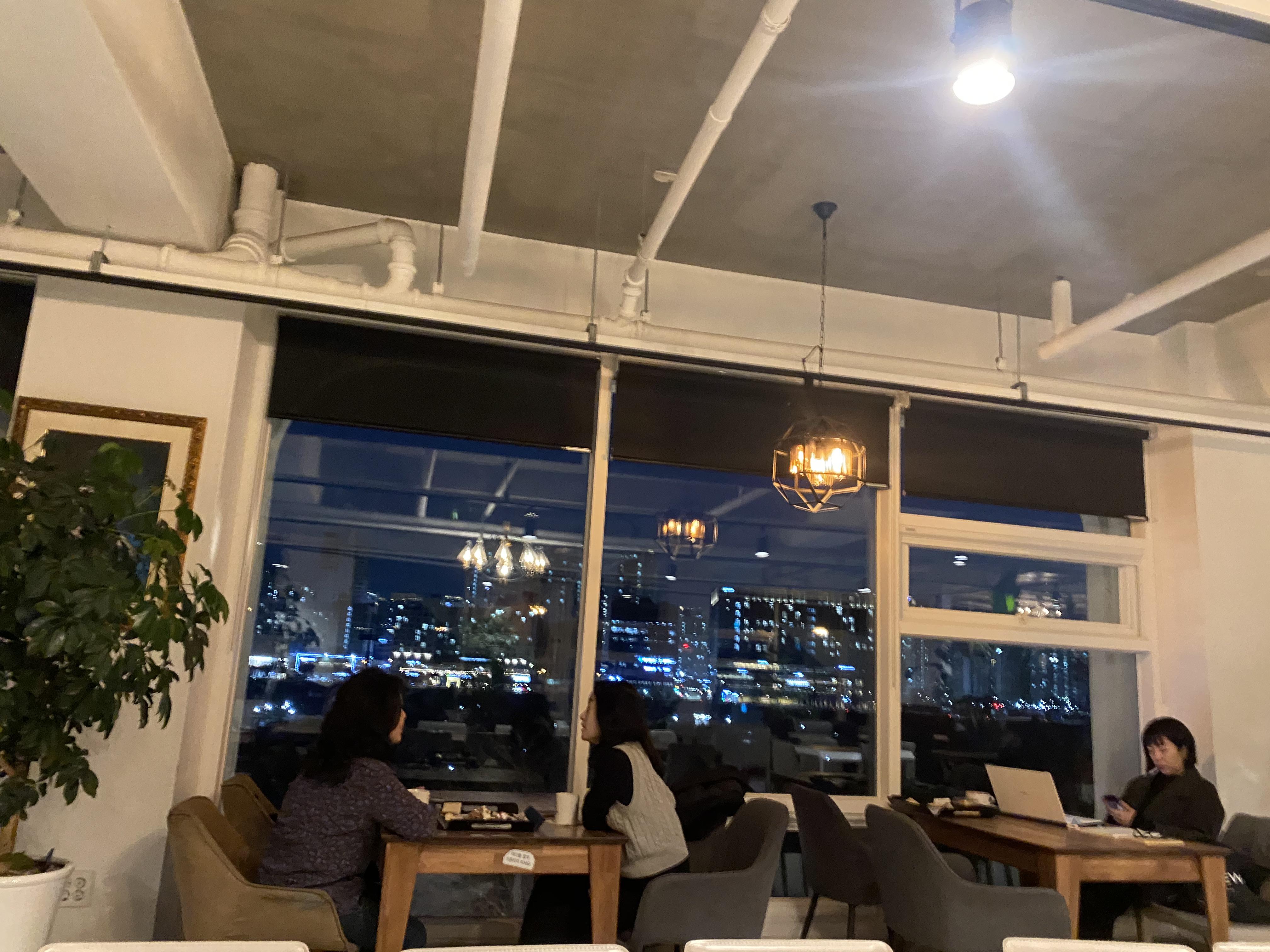 야밤에 커피 한 잔 하며 야경을 보는 맛이 또 있어주는거죠.