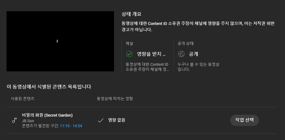 유튜브 내 저작권 식별자인 Content ID 가 발급되어있어,