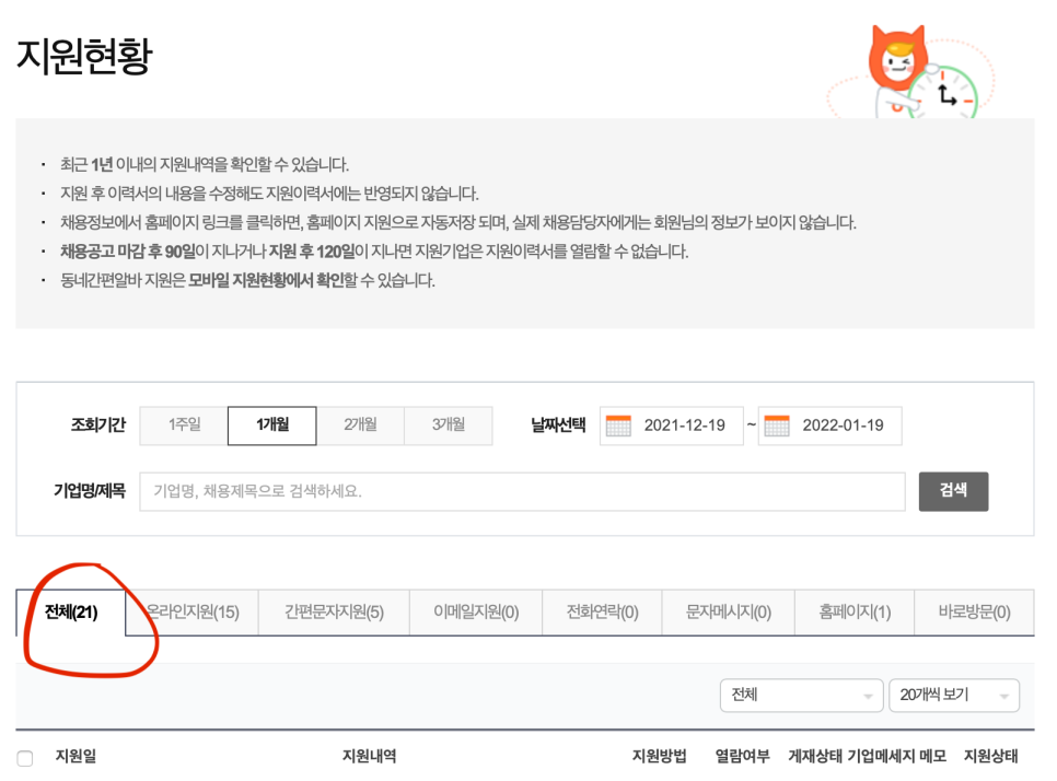 알바몬 홈페이지로만 21개.. 전화연락 5개..