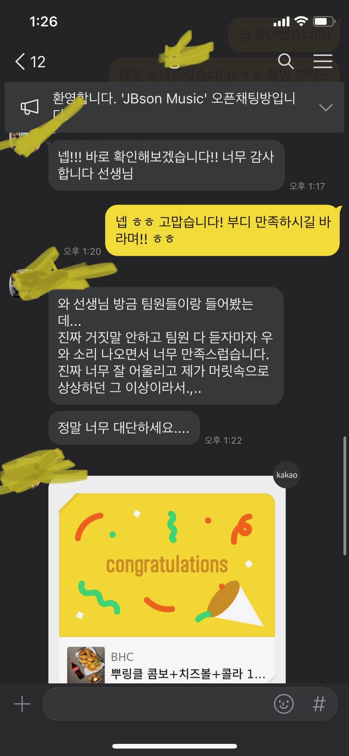 페이와 함께 저에게 해주시는 과찬, 상상 이상이었다는 만족감.