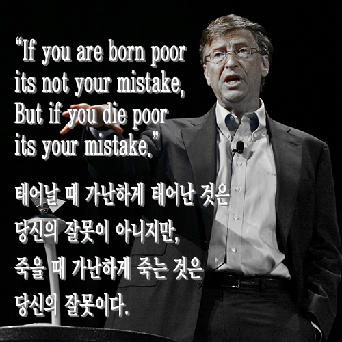 "태어날 때 가난하게 태어난 것은 당신의 잘못이 아니지만, 죽을 때 가난하게 죽는 것은 당신의 잘못이다."