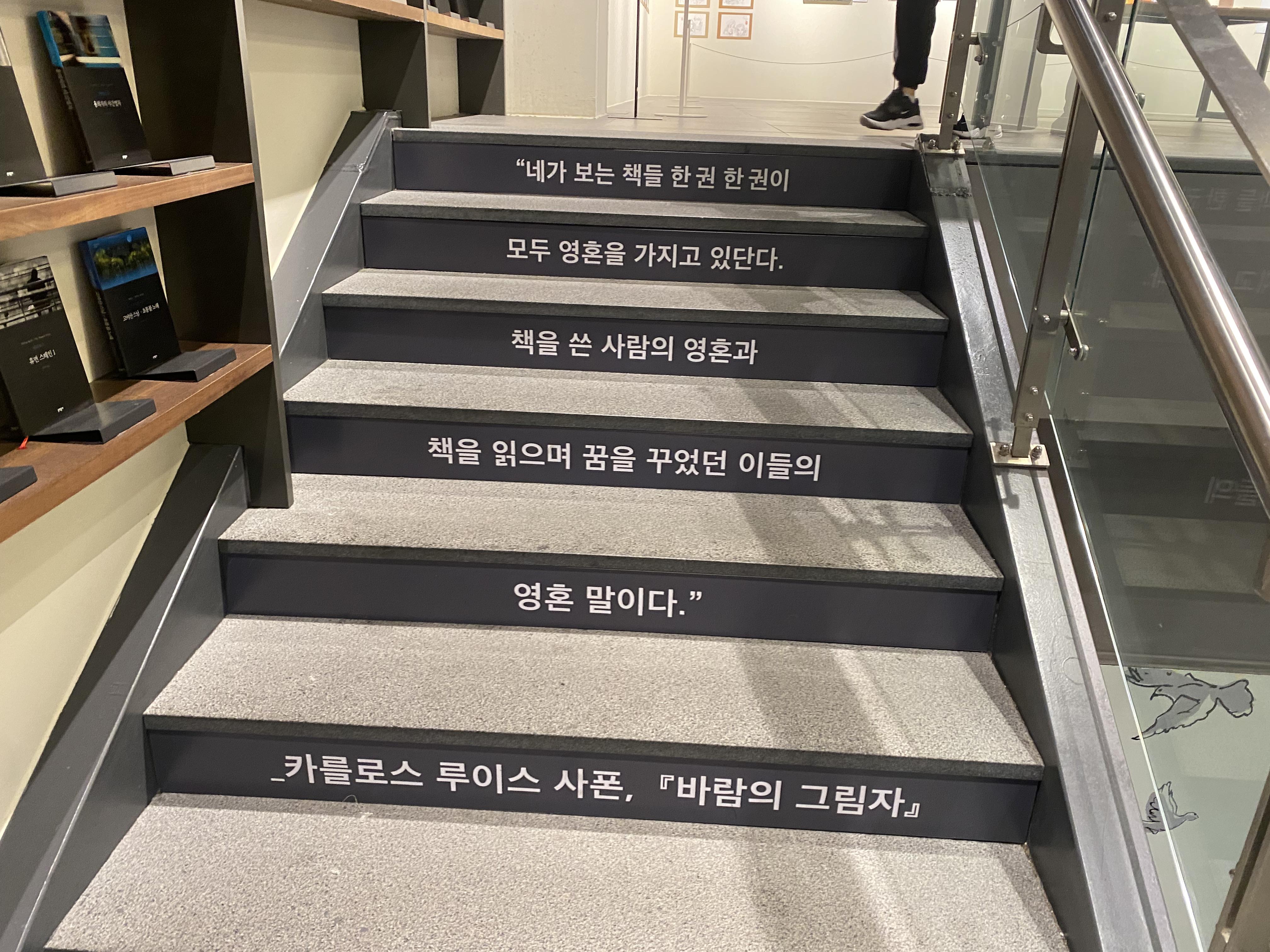 독서의 중요성을 확인할 수 있는 글귀가 2층 매장으로 올라가는 계단에 친절히 써있습니다.